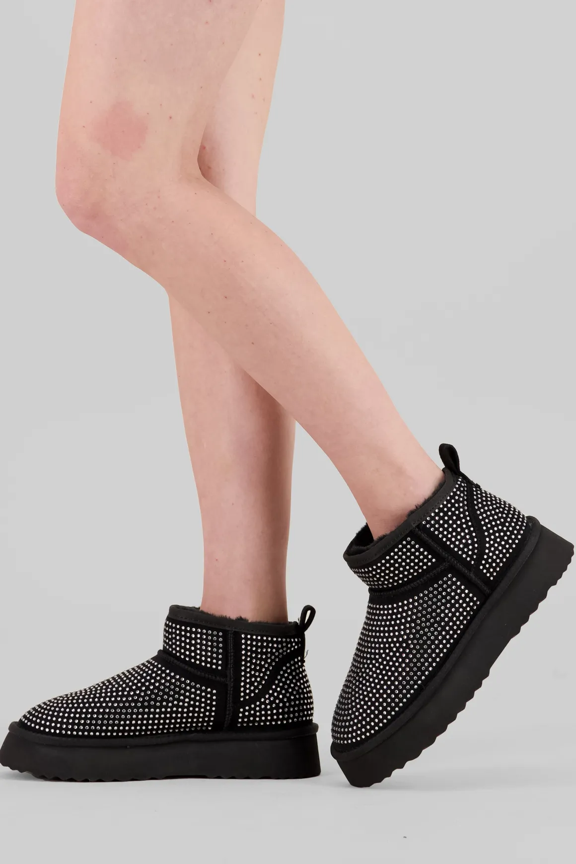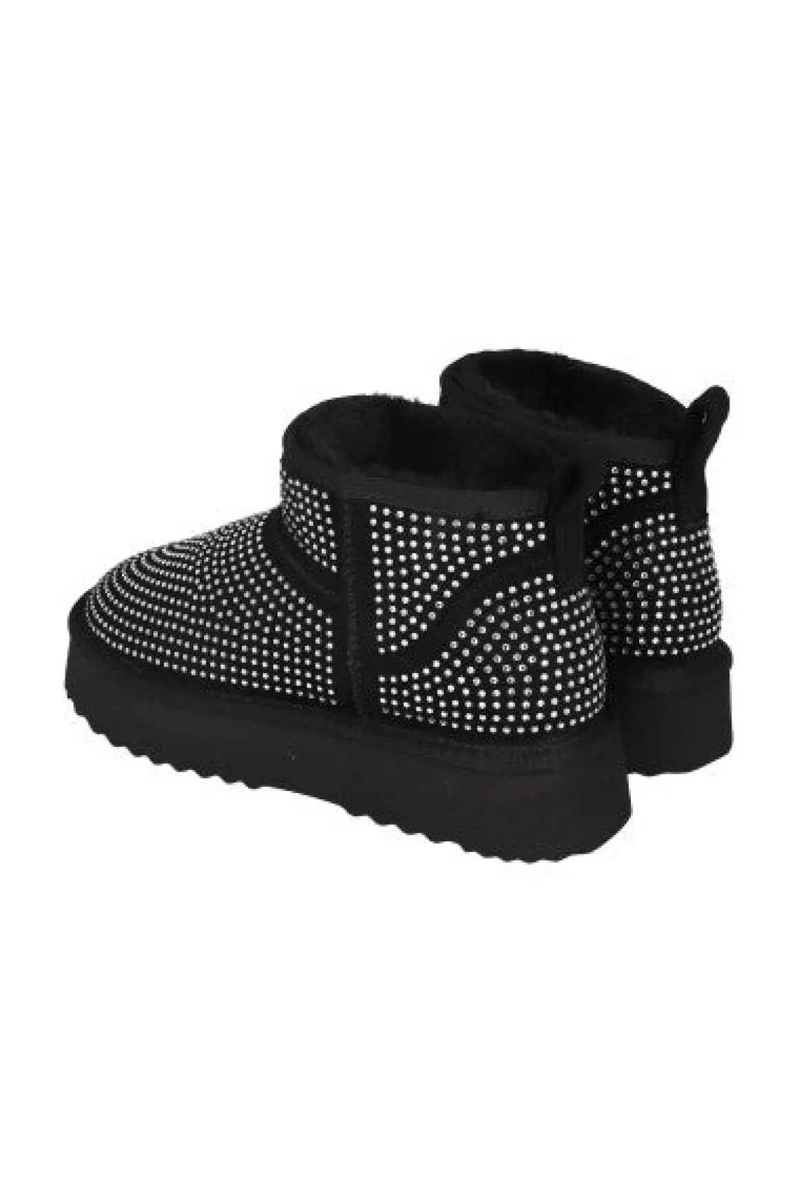 Impulsa tu estilo con estos llamativos botines. Con tiradores superiores para un ajuste seguro, forro interno de peluche para mayor comodidad y una aplicación total de brillos que te hará destacar en cualquier ocasión. Estos botines son la combinación perfecta de moda y comodidad, elevando instantáneamente cualquier atuendo.