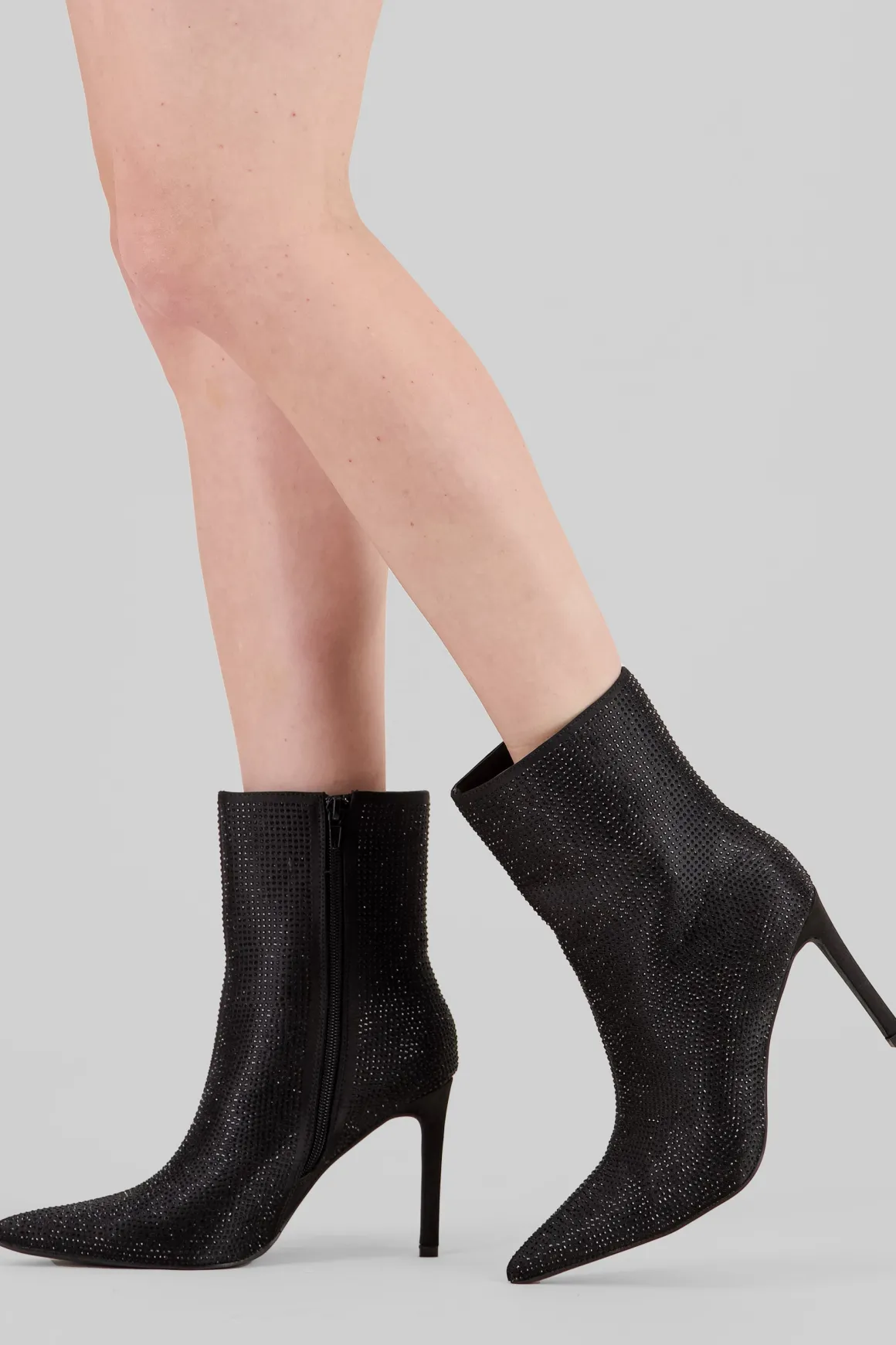 Este botín puntal con tacón aguja delgada es la combinación perfecta para tu estilo. El cierre interior garantiza un ajuste seguro, mientras que la aplicación de brillos añade un toque de glamour a cualquier atuendo.
