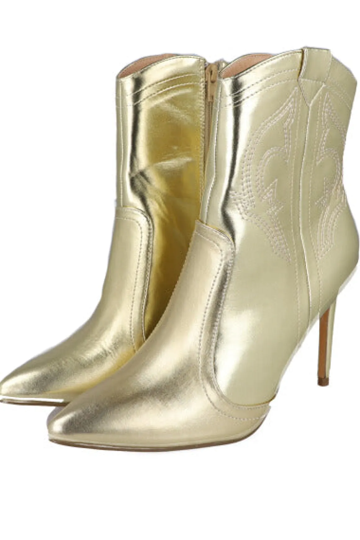Botines con tacón delgado de efecto piel con diseños bordados. Cierre lateral mediante cremallera.