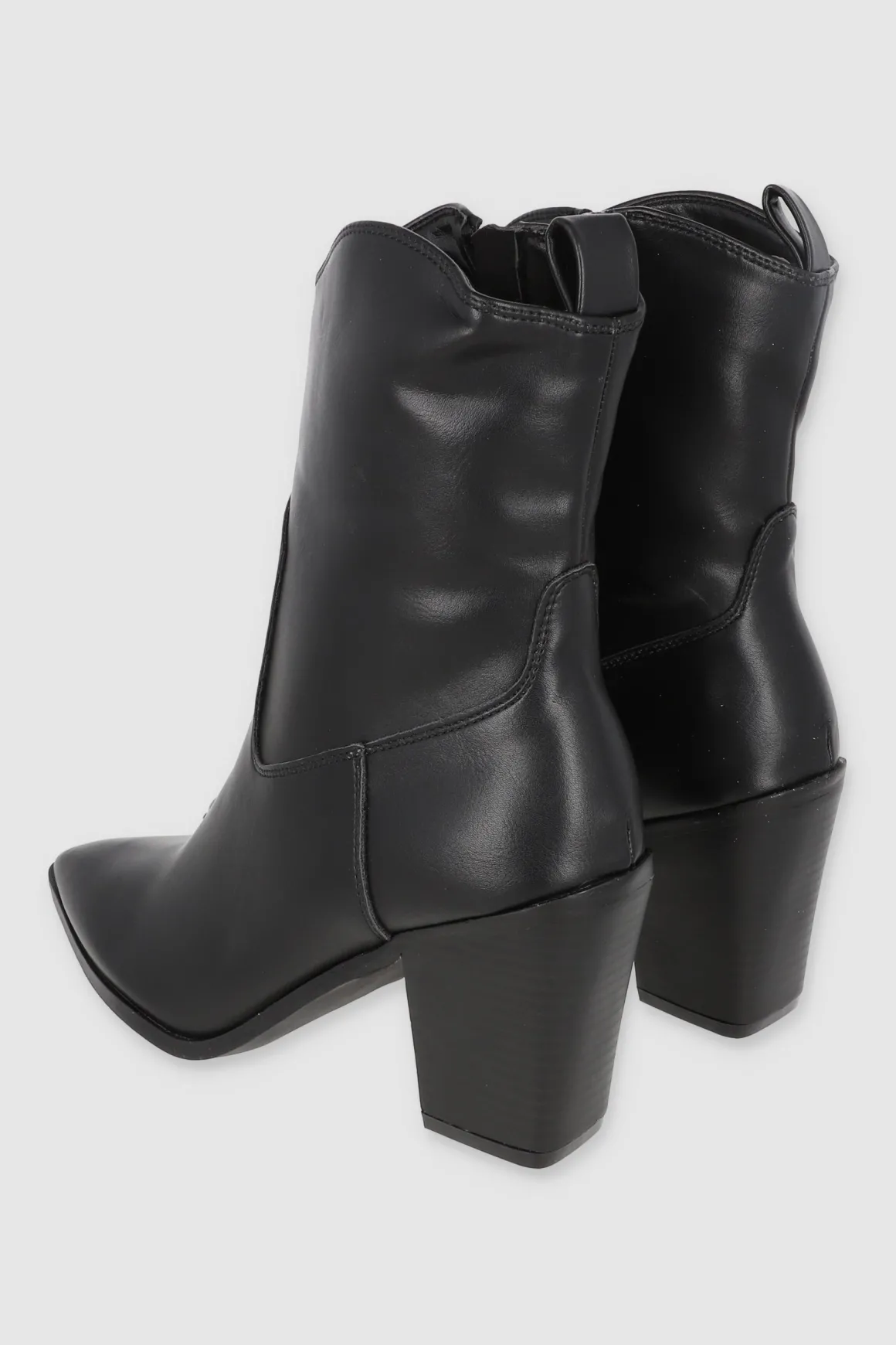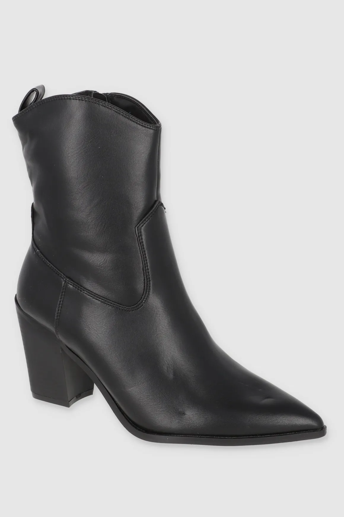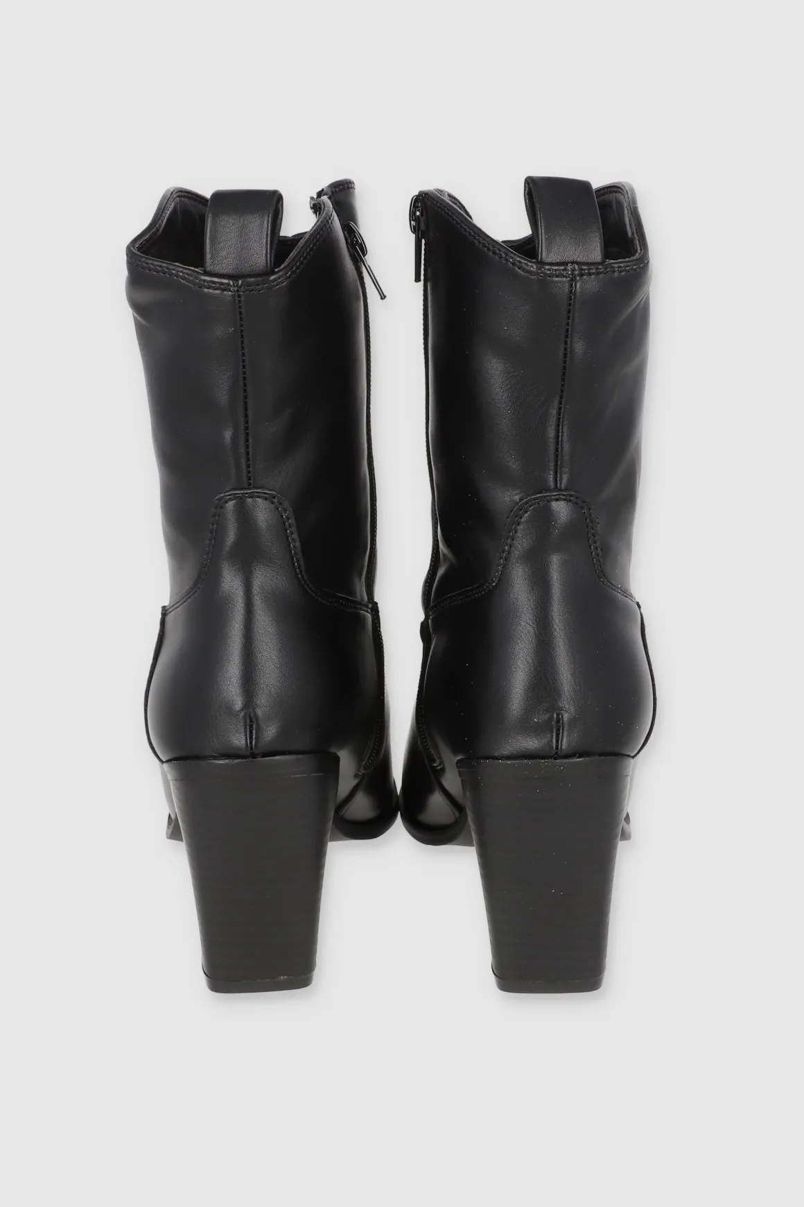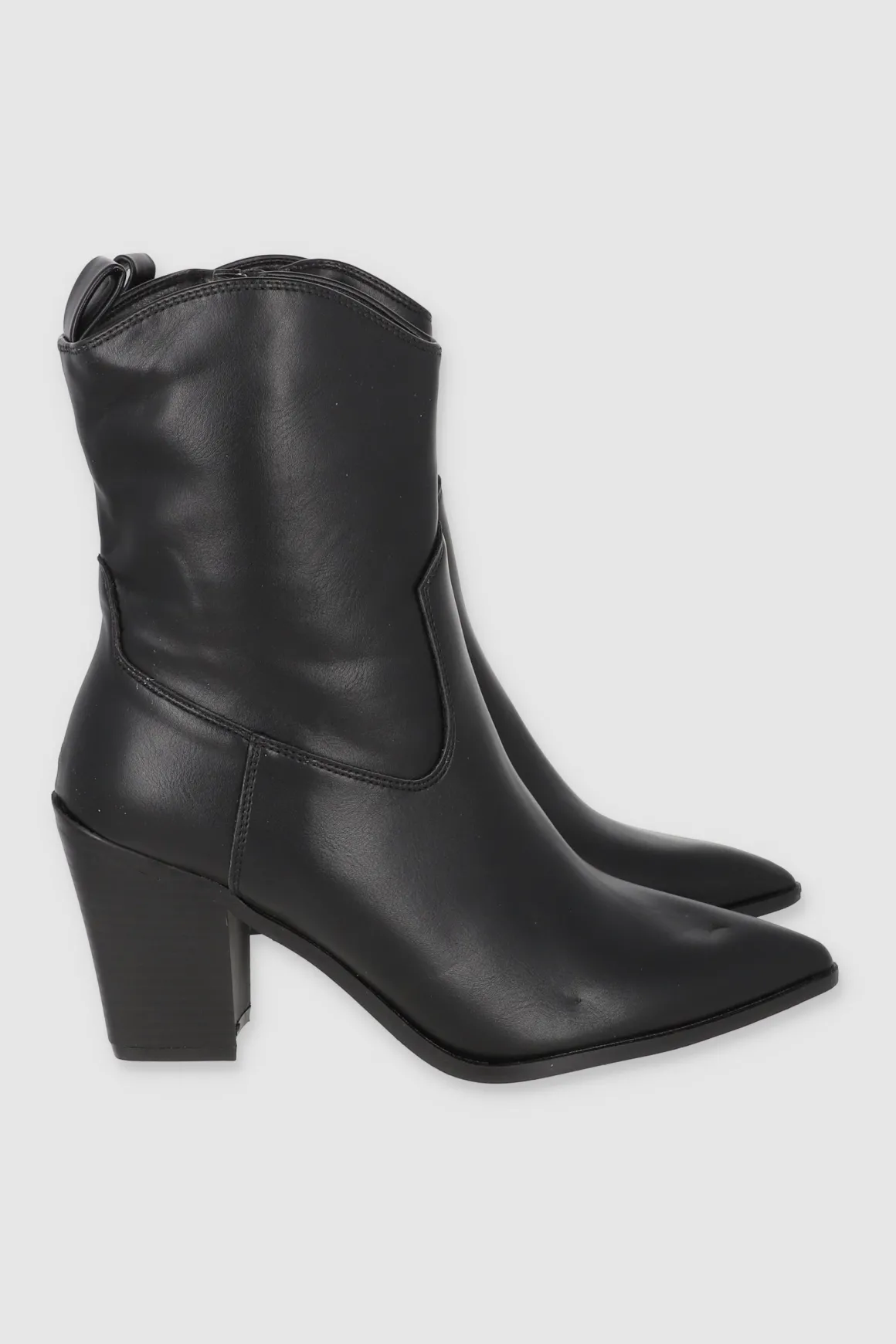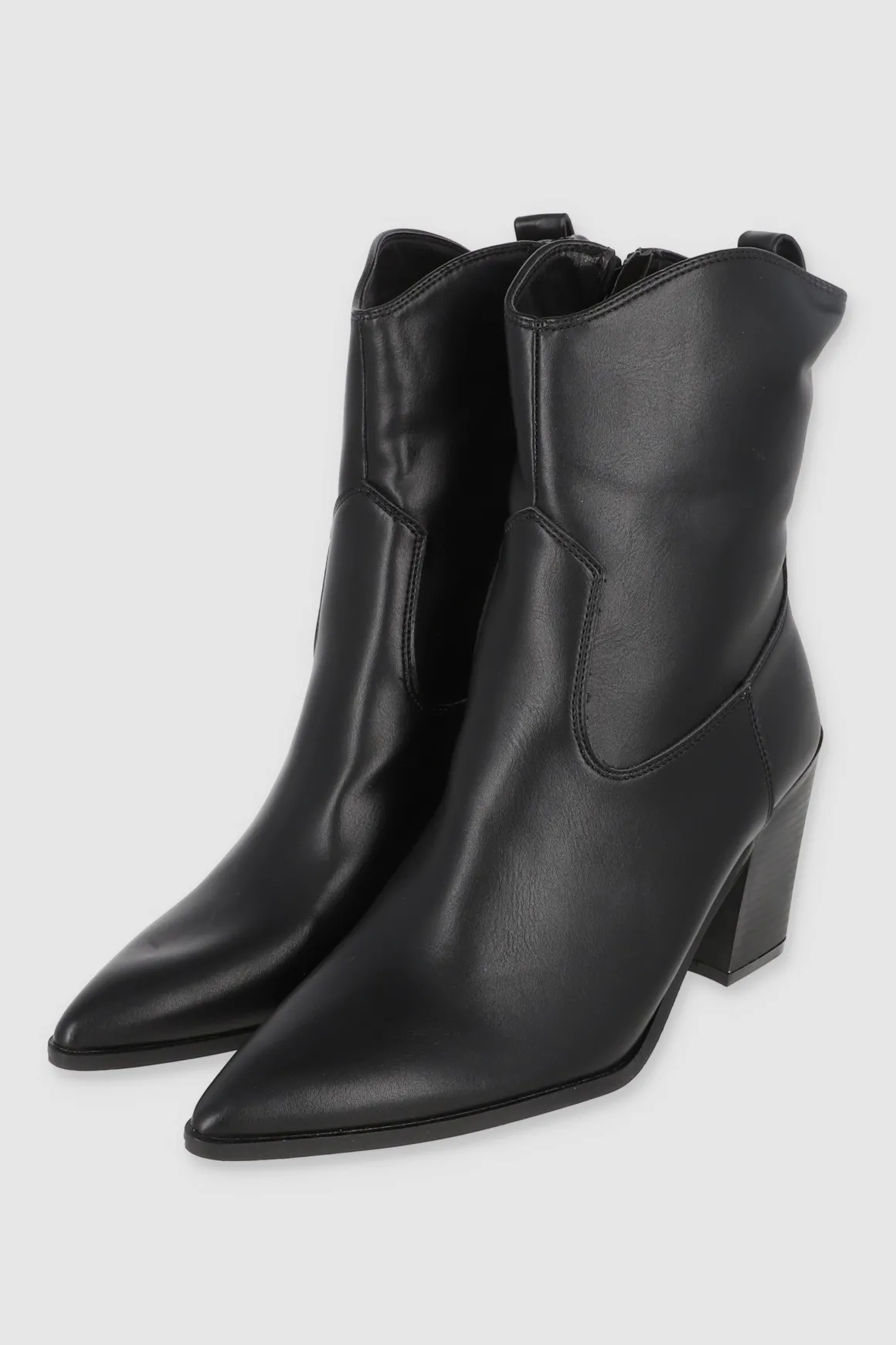 Estos botines vaqueros en efecto piel son ideales para un estilo casual con un toque western. Su tacón ancho brinda comodidad y soporte.