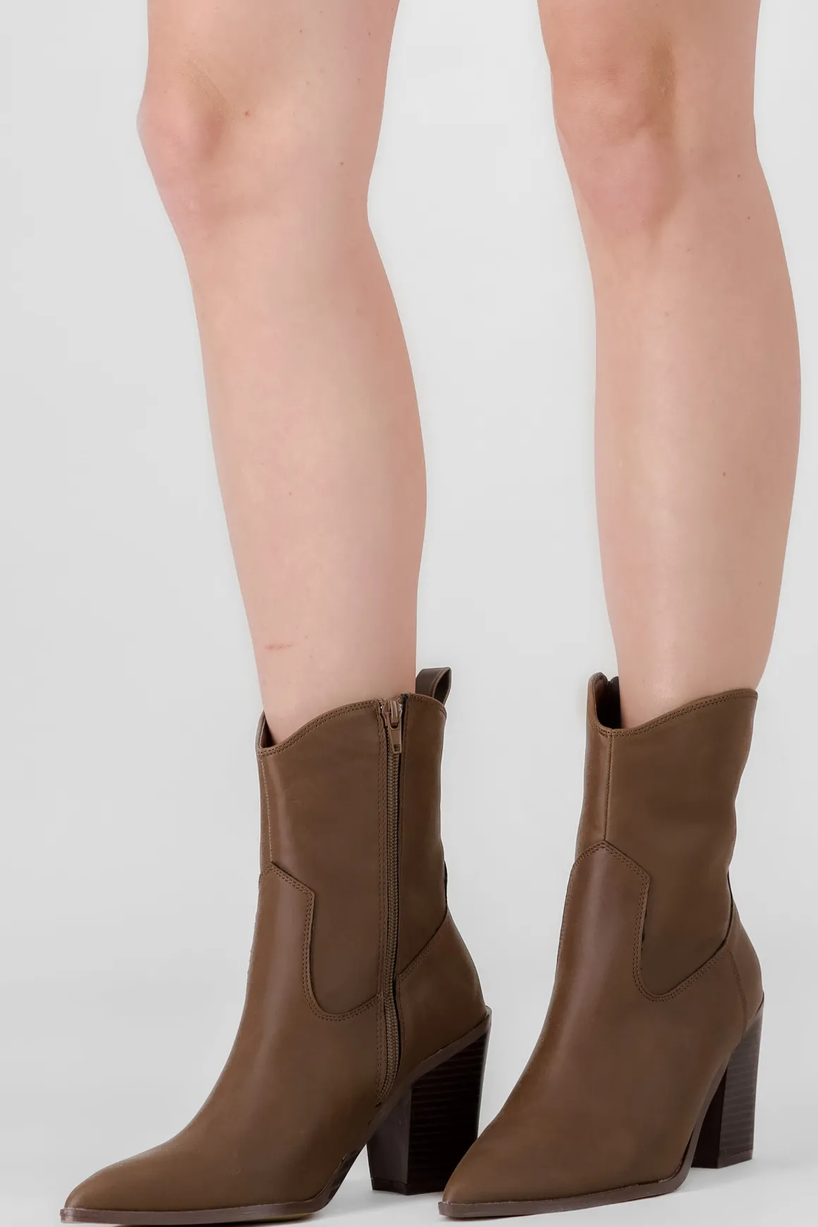 Estos botines vaqueros en efecto piel son ideales para un estilo casual con un toque western. Su tacón ancho brinda comodidad y soporte.