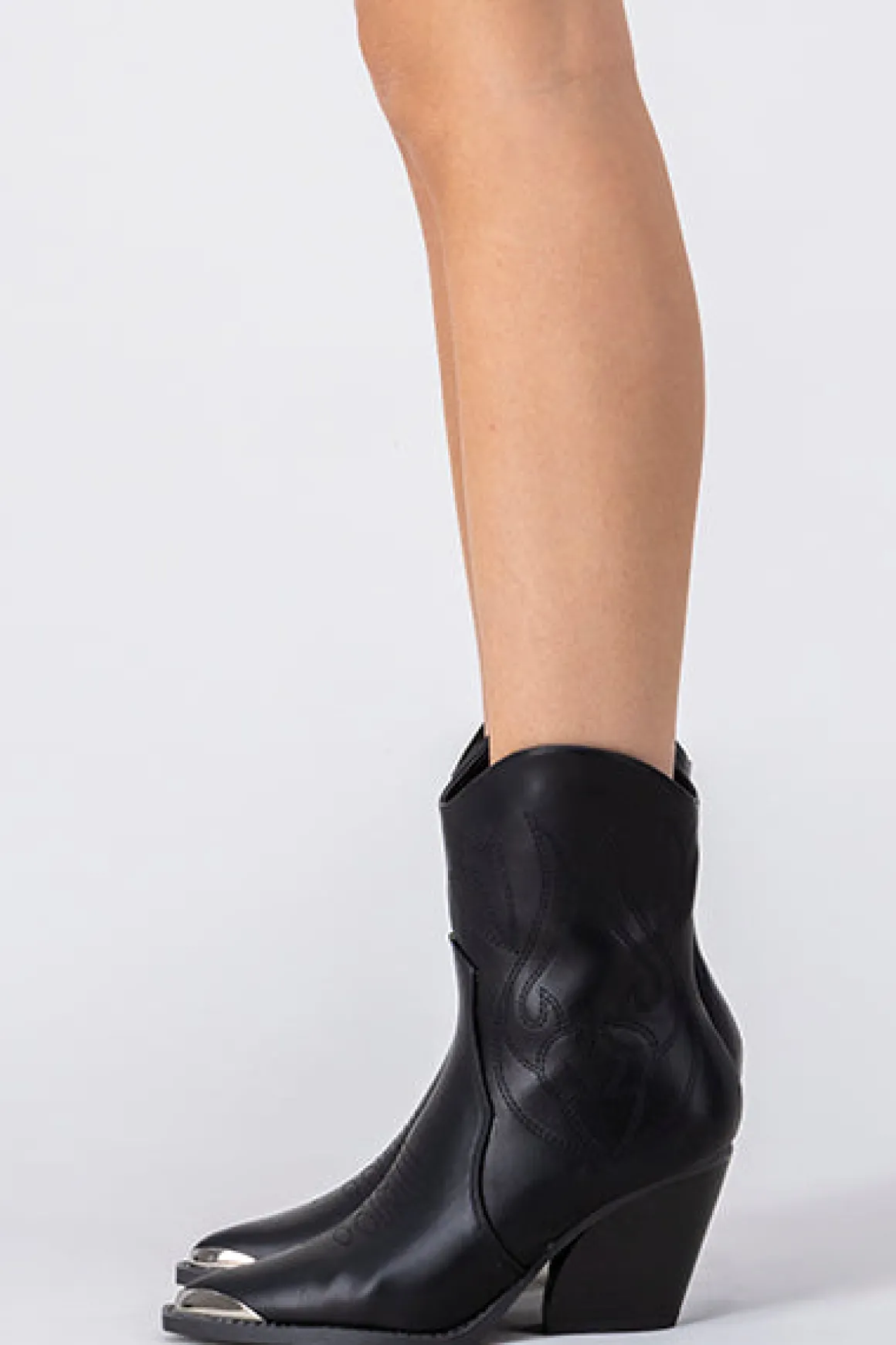 Botín vaquero de tacón con punta metálica. Alto 8.5 cm x Ancho 3.3 cm