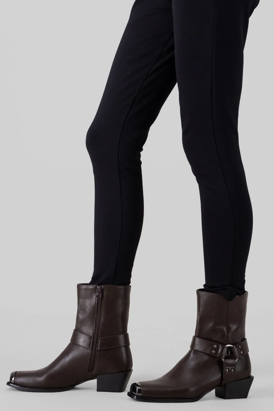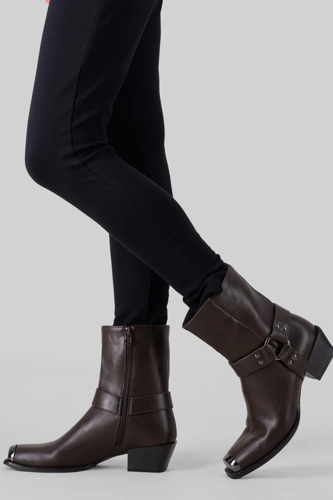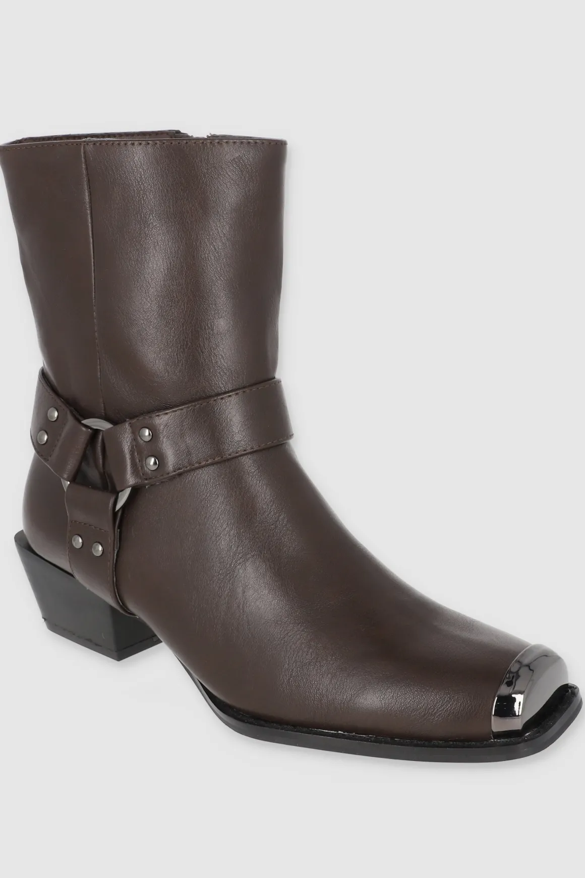 Estos botines vaqueros con punta cuadrada metálica son el toque western que necesitas. Las cintas laterales con aro metálico y el tacón ancho bajo le dan un estilo único y moderno. ¡Combínalos con faldas o jeans y dale un toque vaquero a tu outfit!
