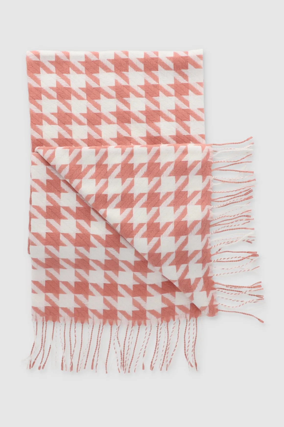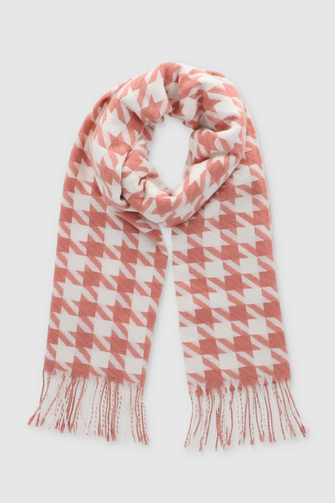 Esta bufanda con estampado de pata de gallo es un must-have para un look chic y moderno.