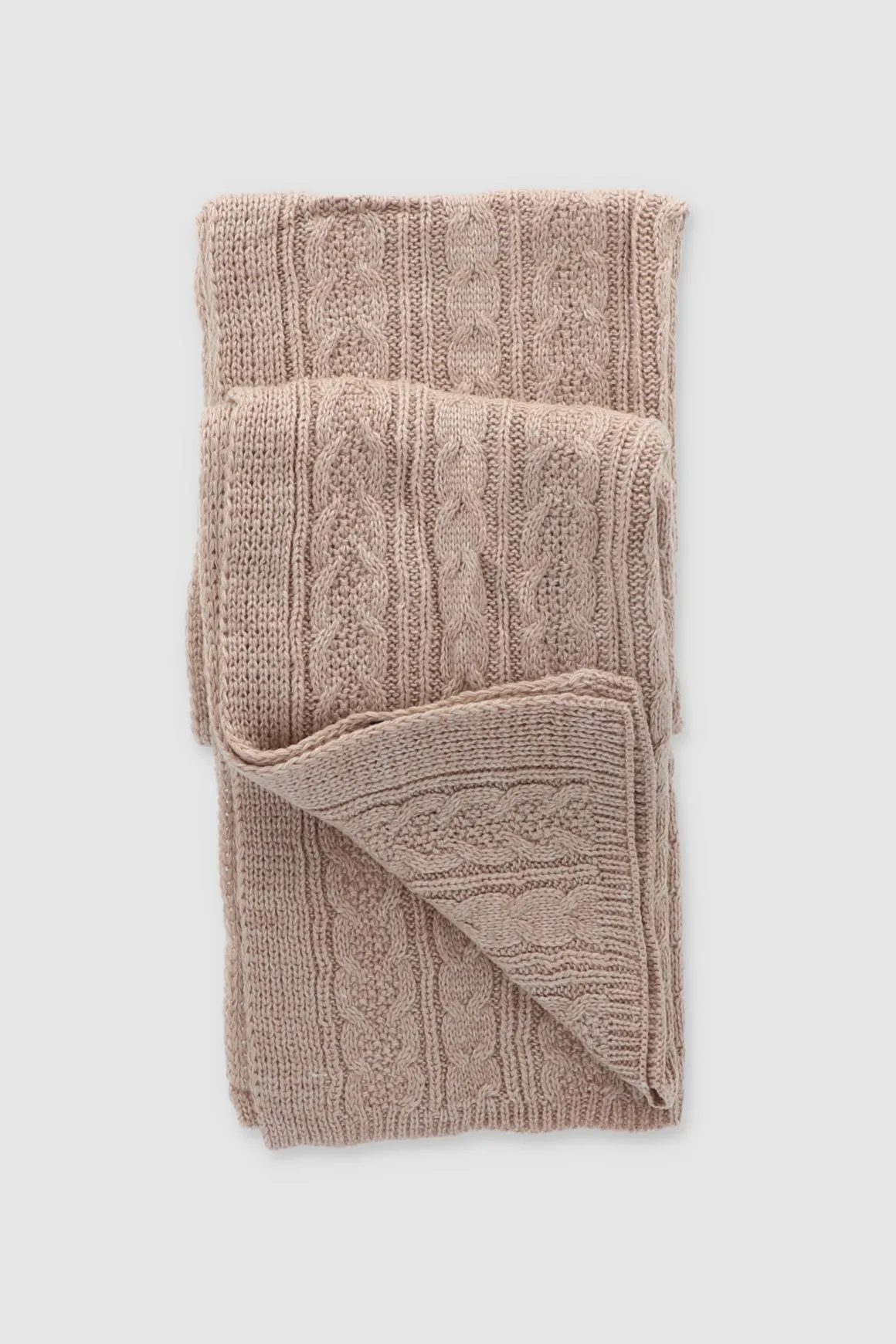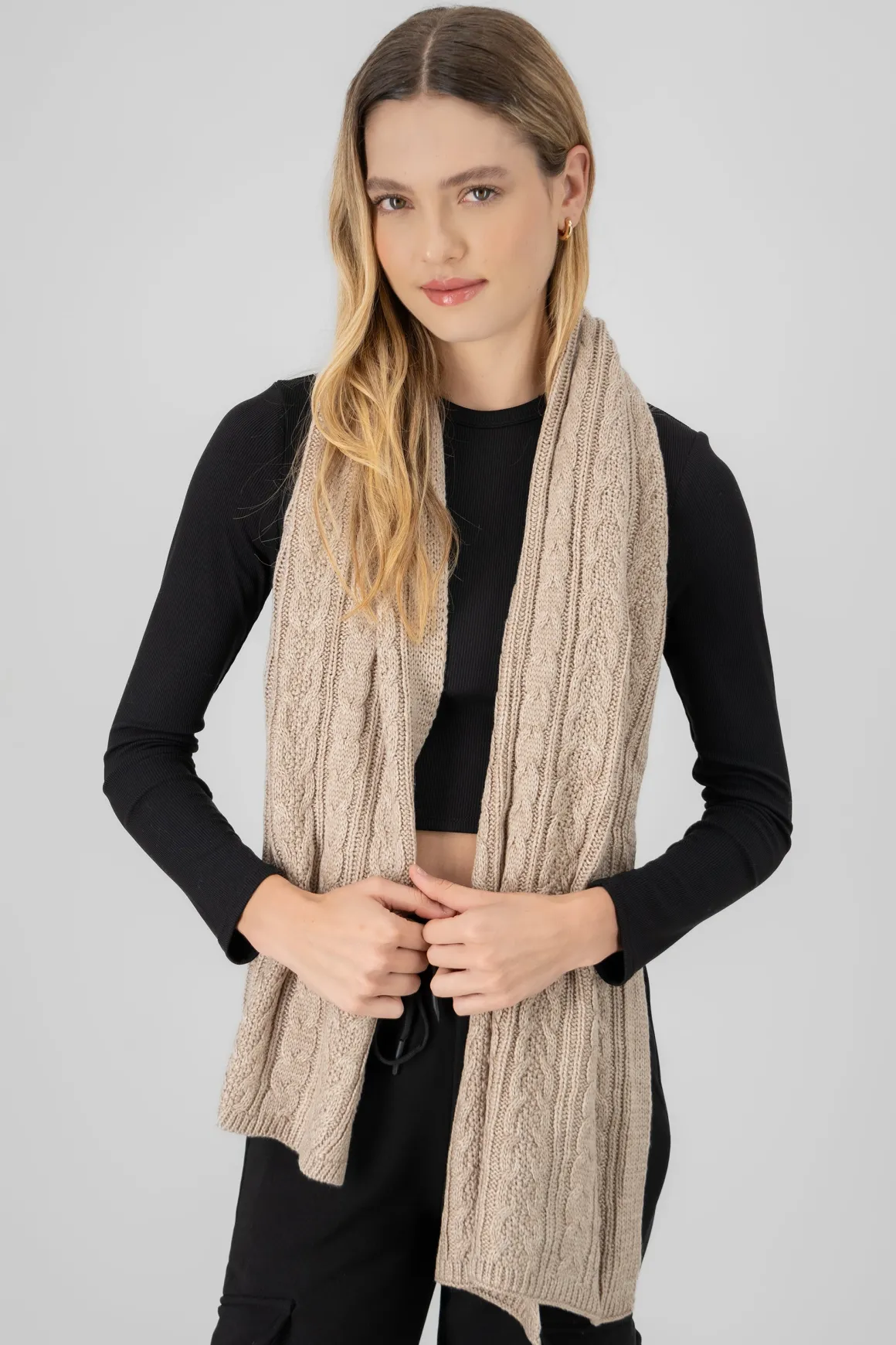 Esta bufanda tejida con punto de trenzas es un must para los días fríos.