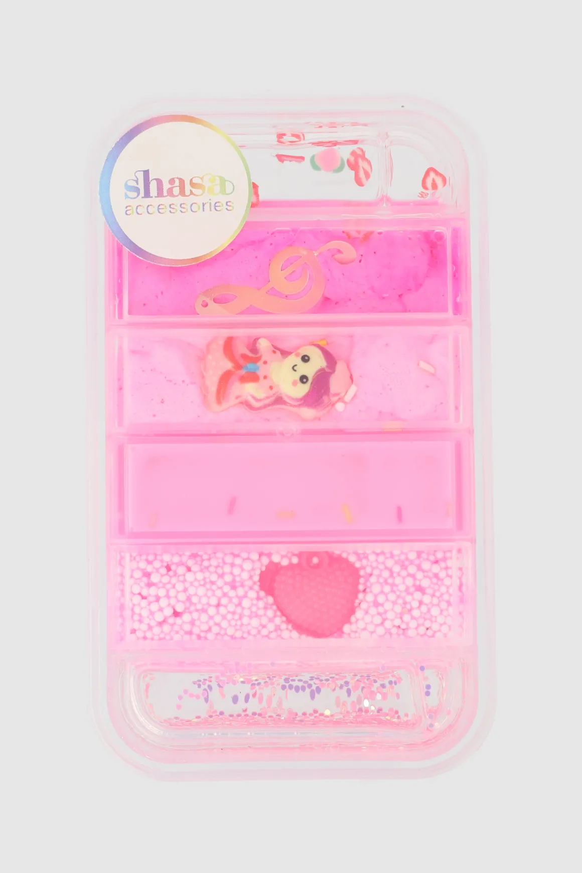 Masa elástica de arcoíris con efecto glitter. Caja rectangular con una variedad de divertidos colores que te permiten crear tus propios accesorios de moda. ¡Deja volar tu imaginación y diseña tus propias joyas, adornos para el cabello y más!