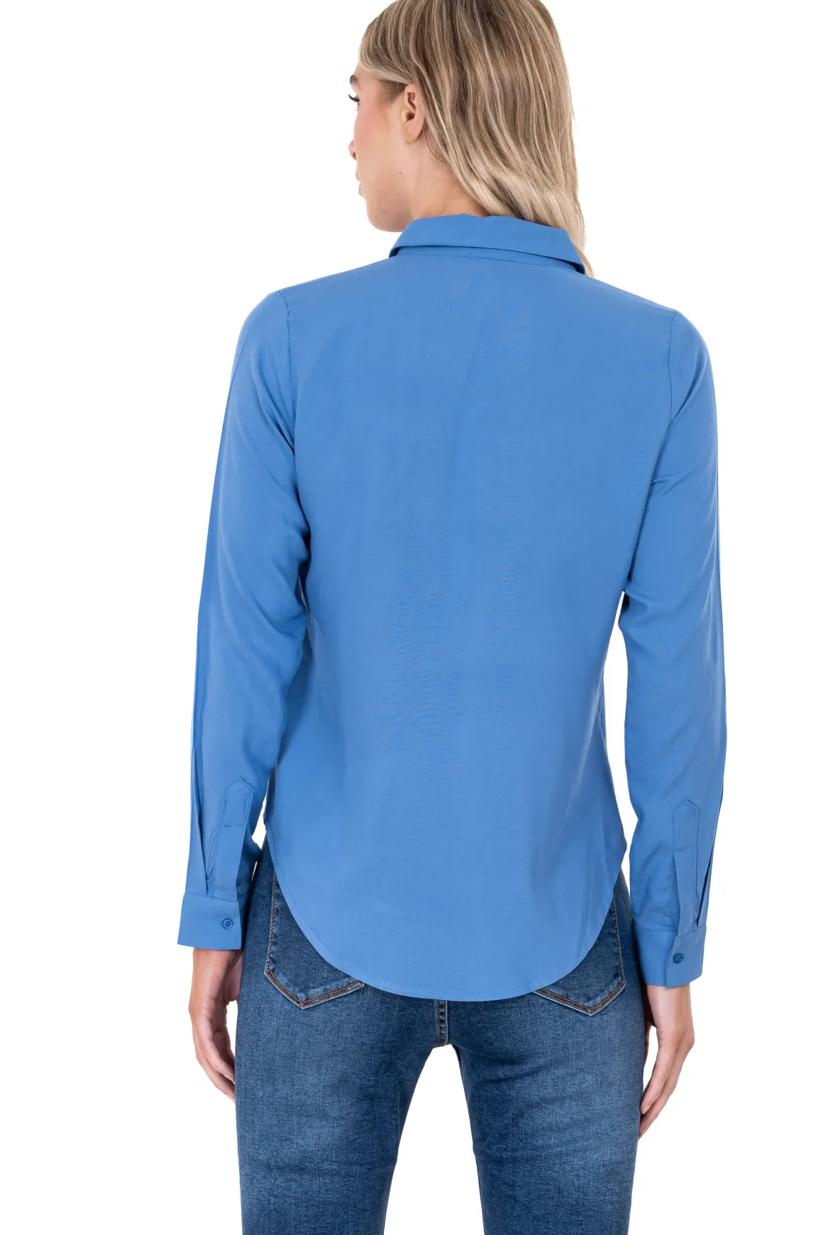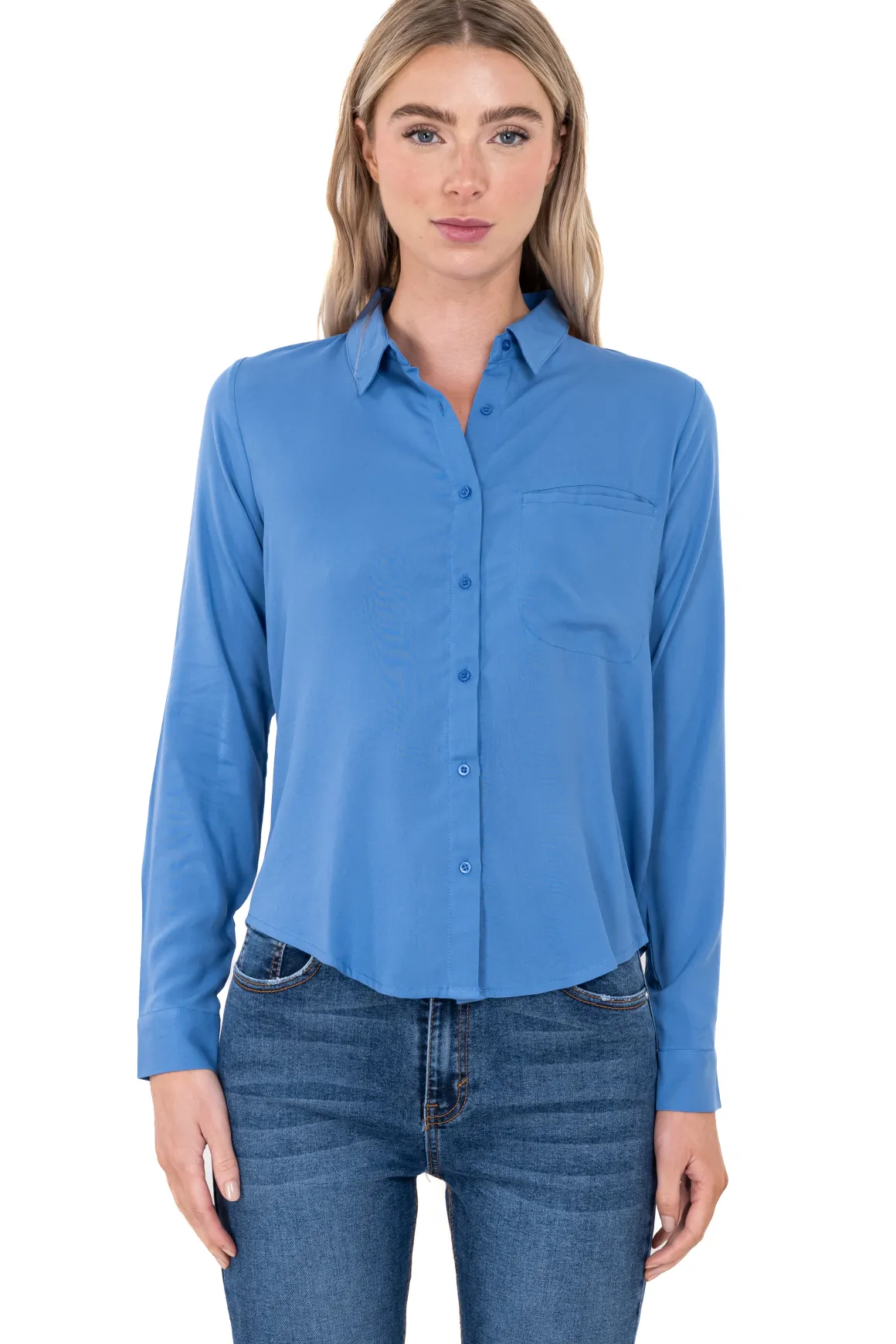Esta camisa de manga larga es tu nueva prenda esencial para cualquier look casual o formal. Con una solapa en el cuello, detalle de bolsillo frontal y cierre mediante botones, es versátil y fácil de combinar. Ya sea que la uses con jeans para un look relajado o con una falda para algo más chic, esta camisa te ofrece infinitas posibilidades para destacar en cualquier ocasión.