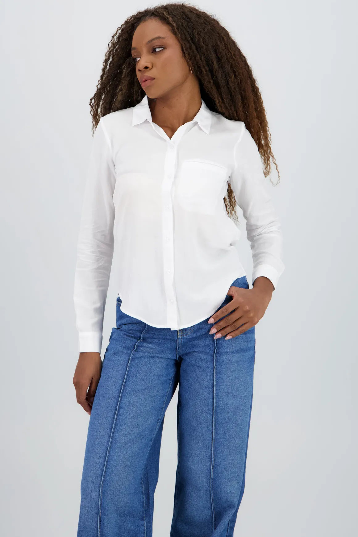 Esta camisa de manga larga es tu nueva prenda esencial para cualquier look casual o formal. Con una solapa en el cuello, detalle de bolsillo frontal y cierre mediante botones, es versátil y fácil de combinar. Ya sea que la uses con jeans para un look relajado o con una falda para algo más chic, esta camisa te ofrece infinitas posibilidades para destacar en cualquier ocasión.
