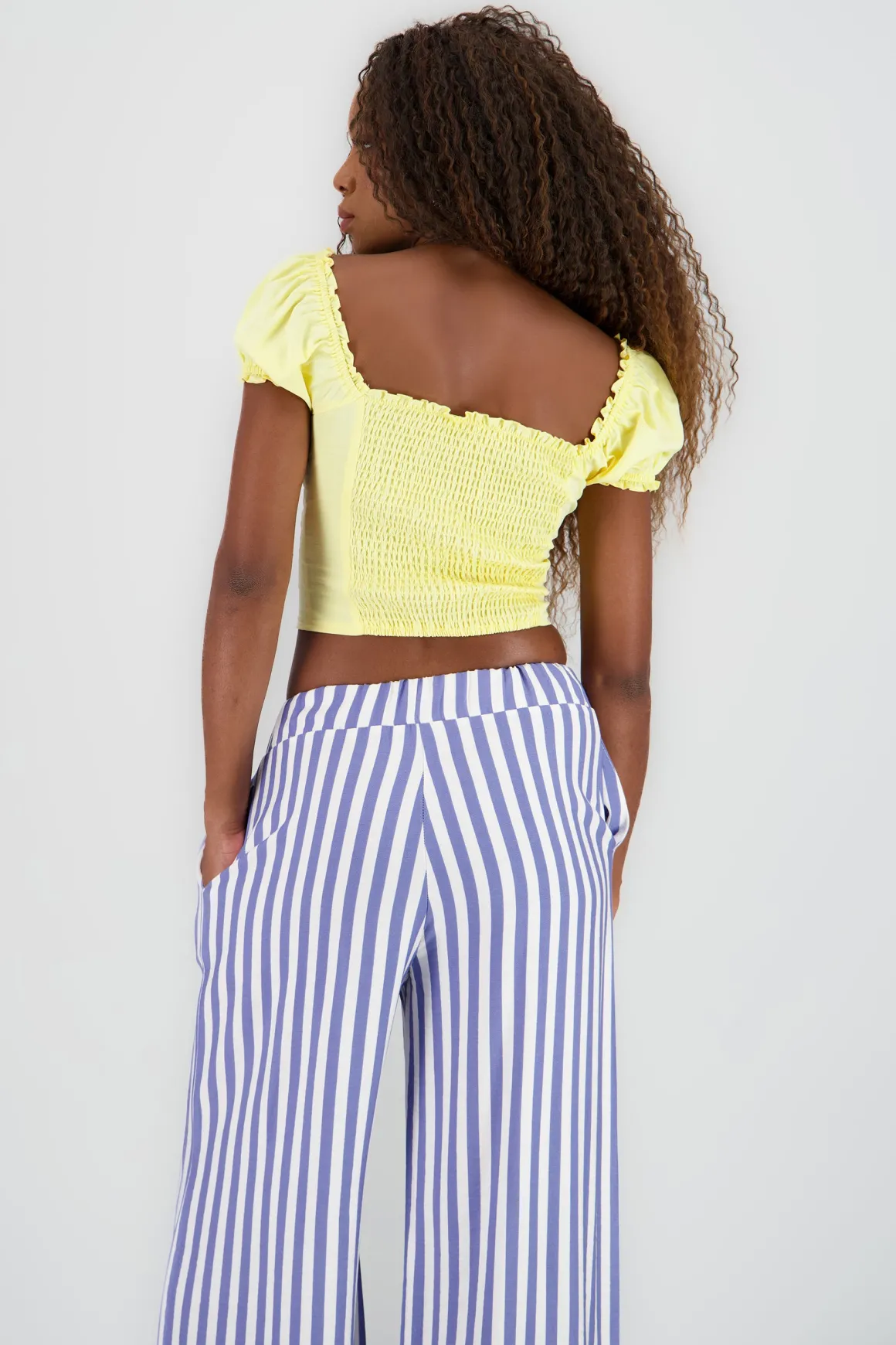 Esta camisa es el toque perfecto para quienes buscan un estilo único y encantador. Con su diseño de pinzas que realza la silueta, y mangas abullonadas que añaden un aire moderno.