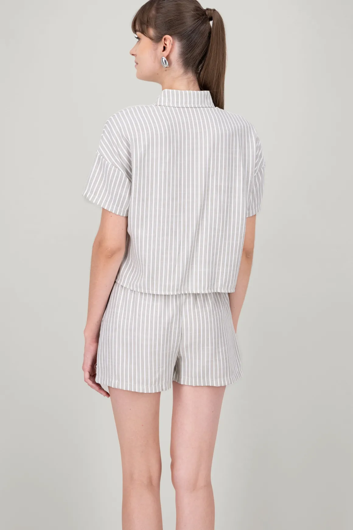 Descubre nuestra camisa crop de manga corta con un diseño de rayas vibrantes: