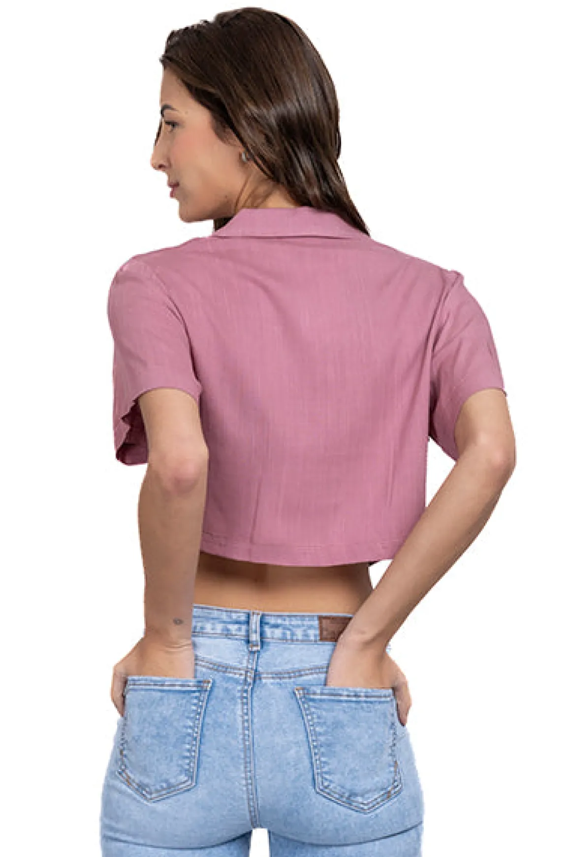 Esta camisa crop es ideal para un look relajado pero moderno. Su diseño sencillo la hace perfecta para combinar con tus jeans o faldas favoritas.