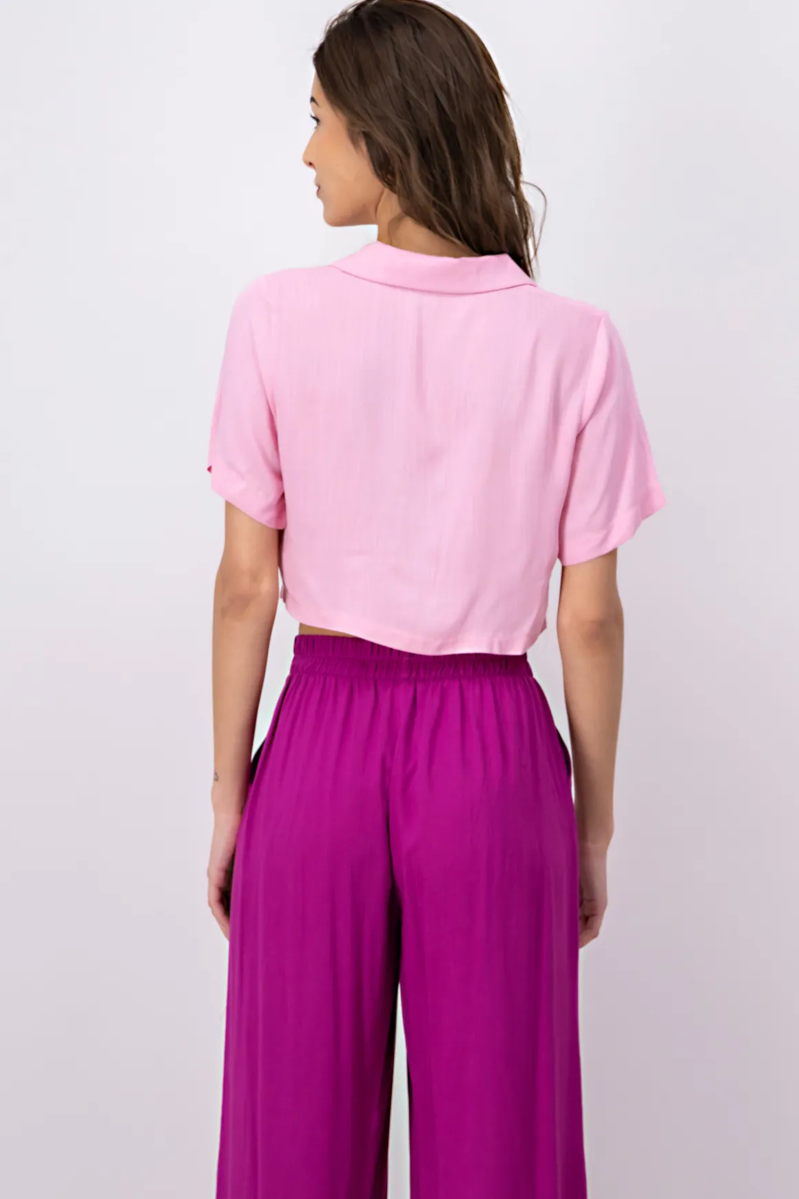 Esta camisa crop es ideal para un look relajado pero moderno. Su diseño sencillo la hace perfecta para combinar con tus jeans o faldas favoritas.