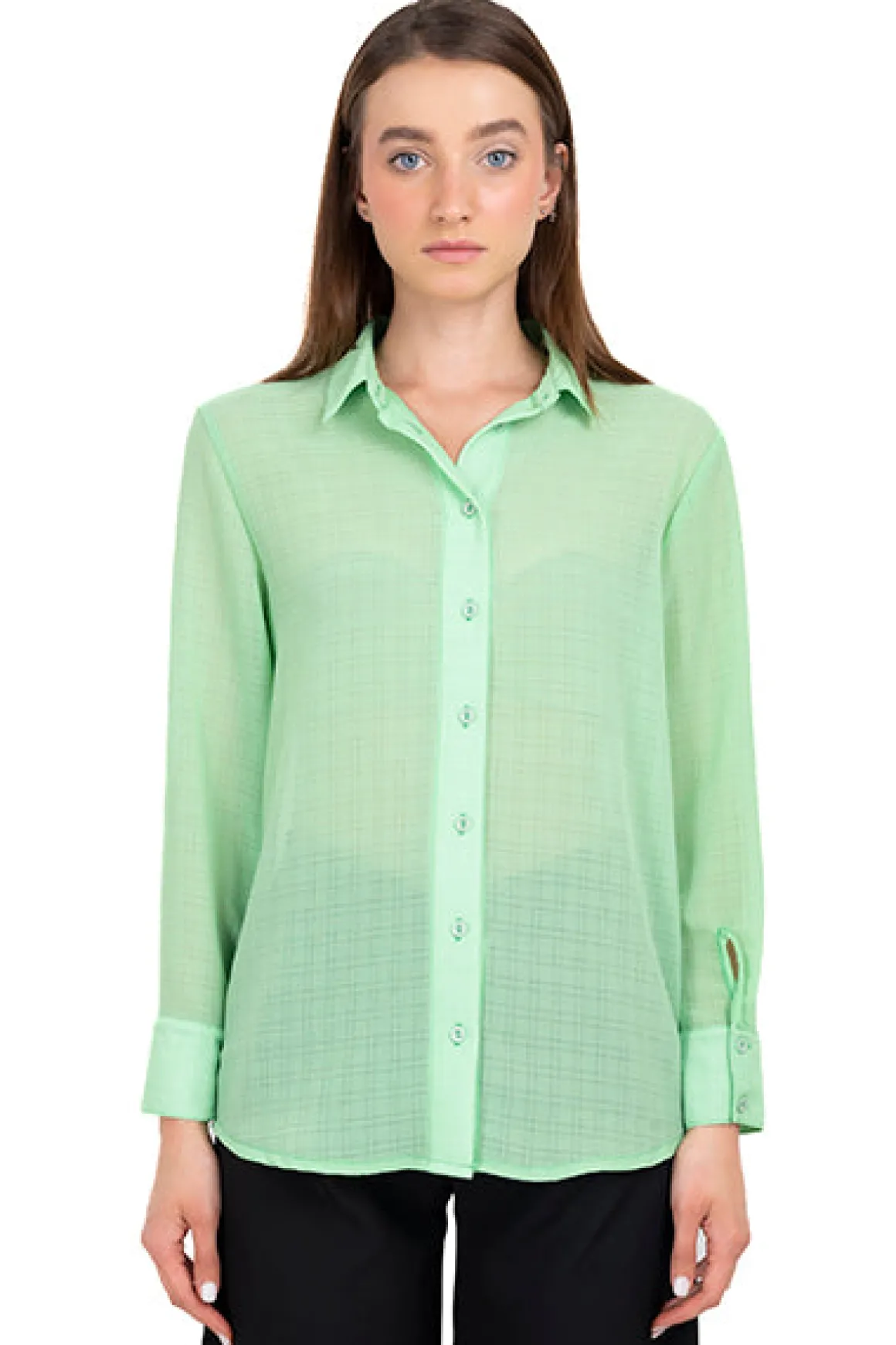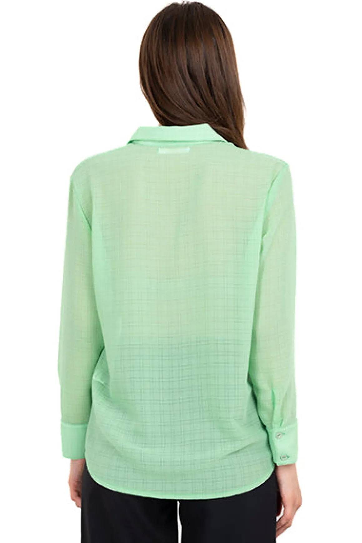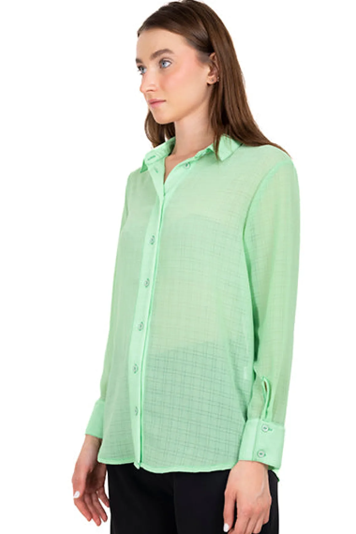 Camisa de cuadros con cuello regular y manga larga. Botones con ojal en la parte frontal y en puños.