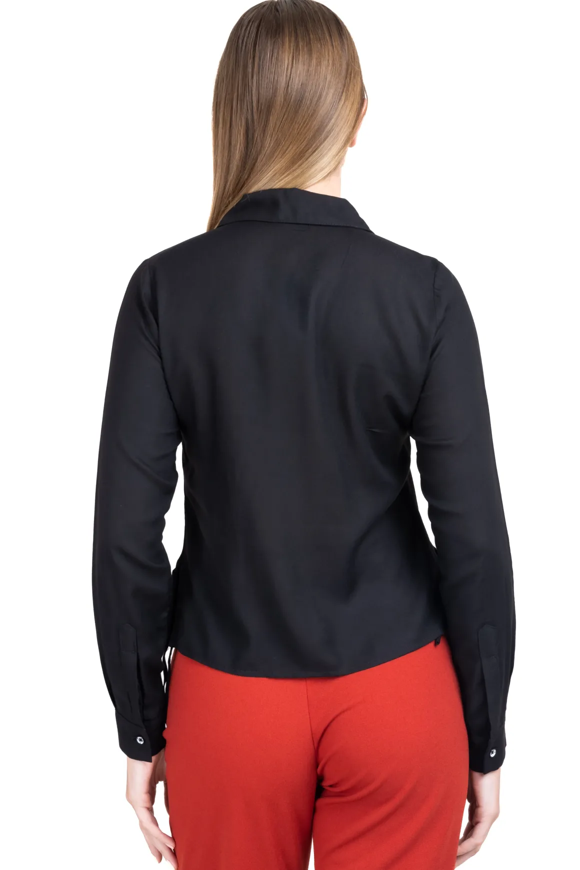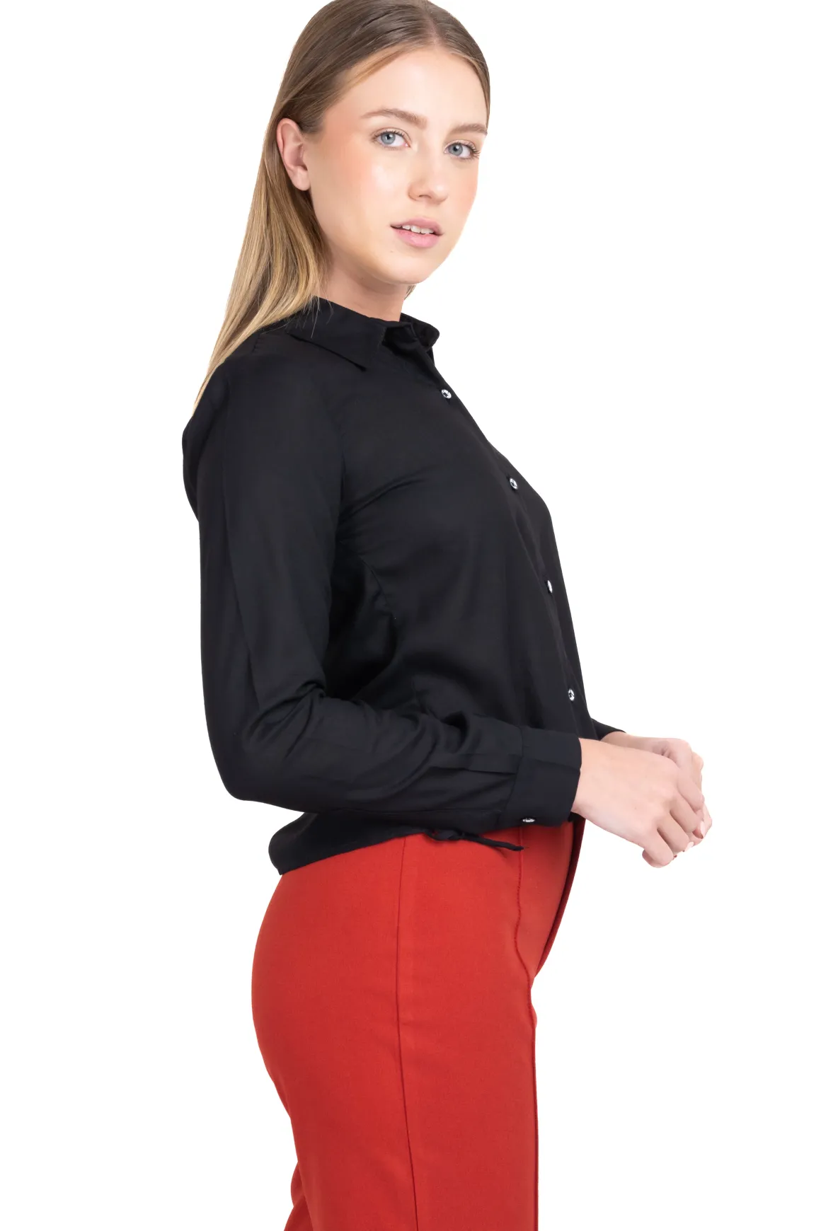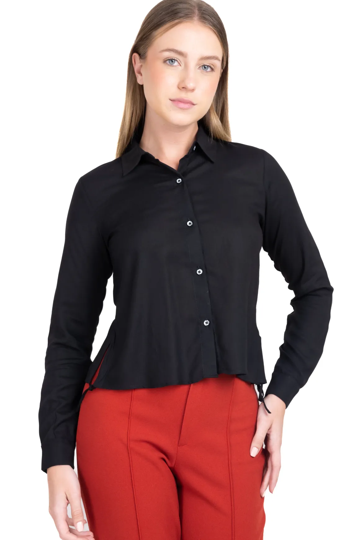 Camisa lisa de cuello solapa y manga larga.