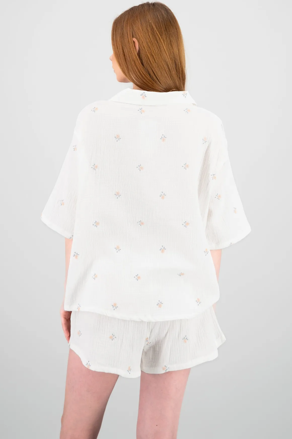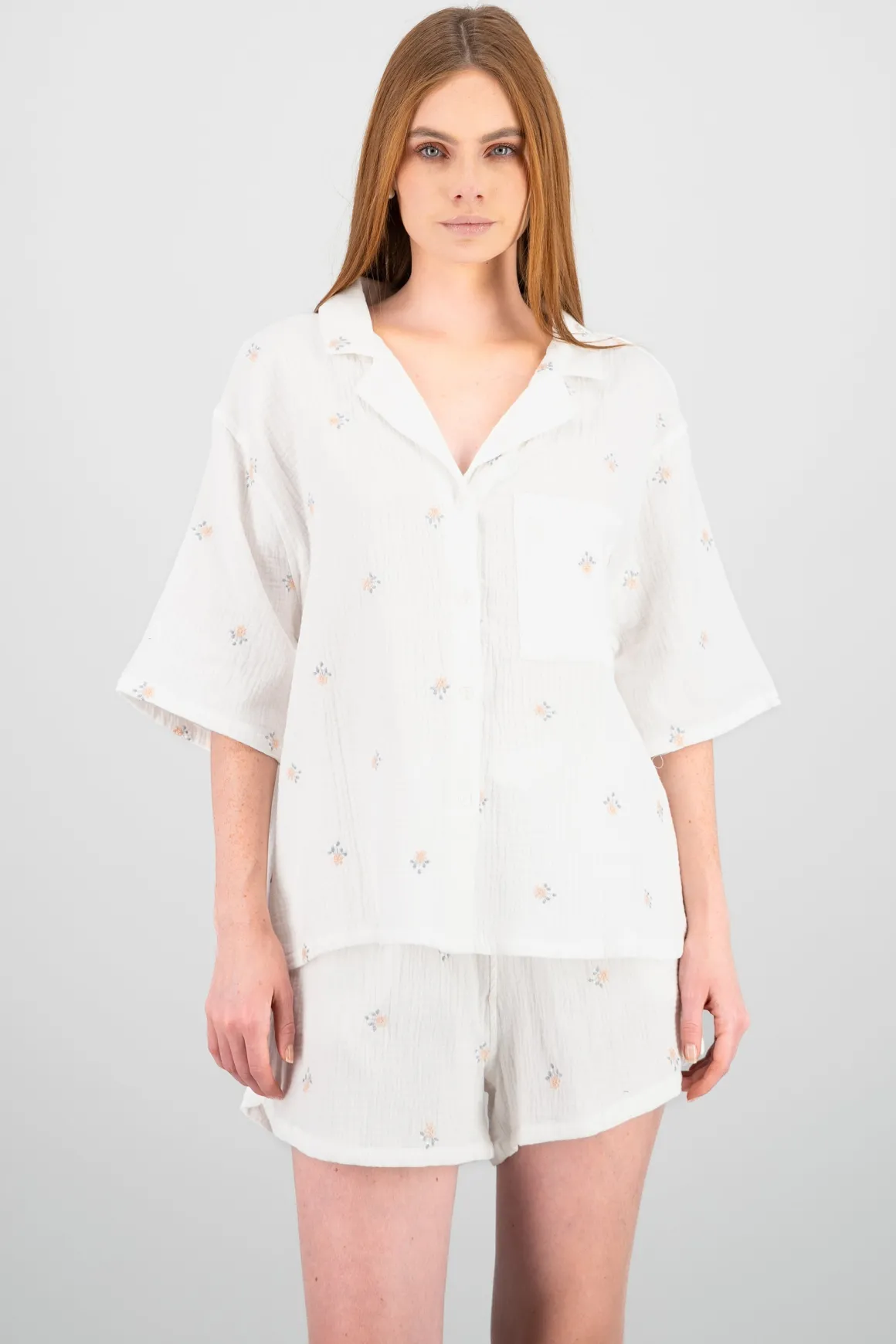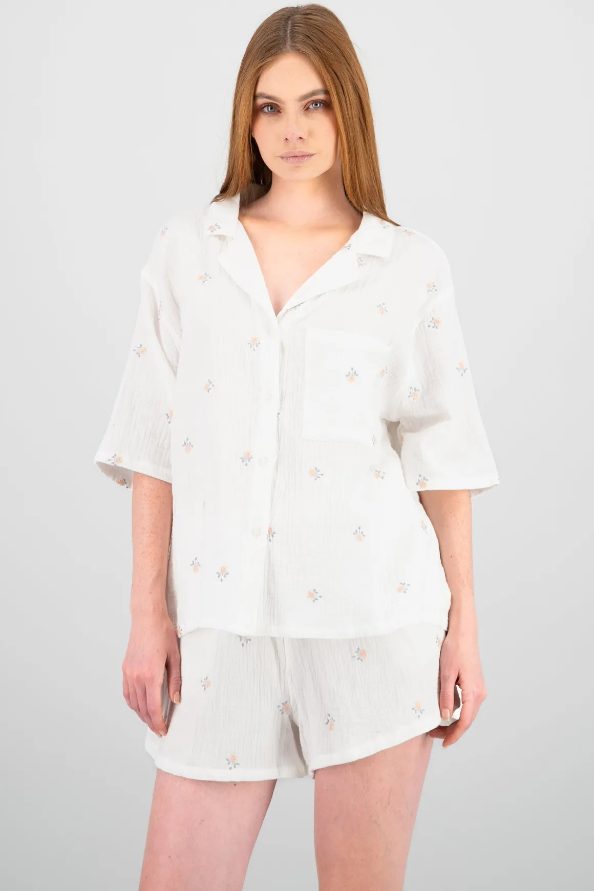 ¡Atrévete a florecer con esta camisa de manga corta! Perfecta para esos días soleados, su diseño cautivador te hará sentir única y especial.