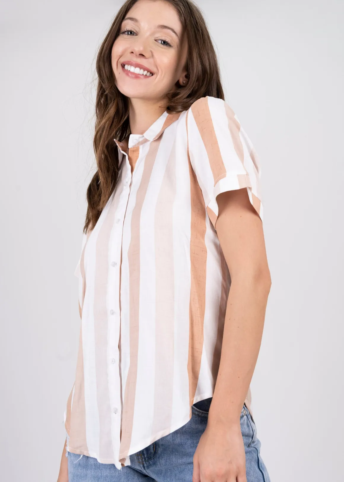 Si buscas una camisa versátil y con estilo para lucir en cualquier ocasión, nuestra camisa de manga corta rayada es la elección perfecta. Las rayas le dan un toque de elegancia y estilo, perfecto para combinar con pantalones de mezclilla para un look casual o con una falda para un estilo más chic. Ya sea para la oficina, una salida informal o una reunión con amigos, esta camisa es la opción ideal.