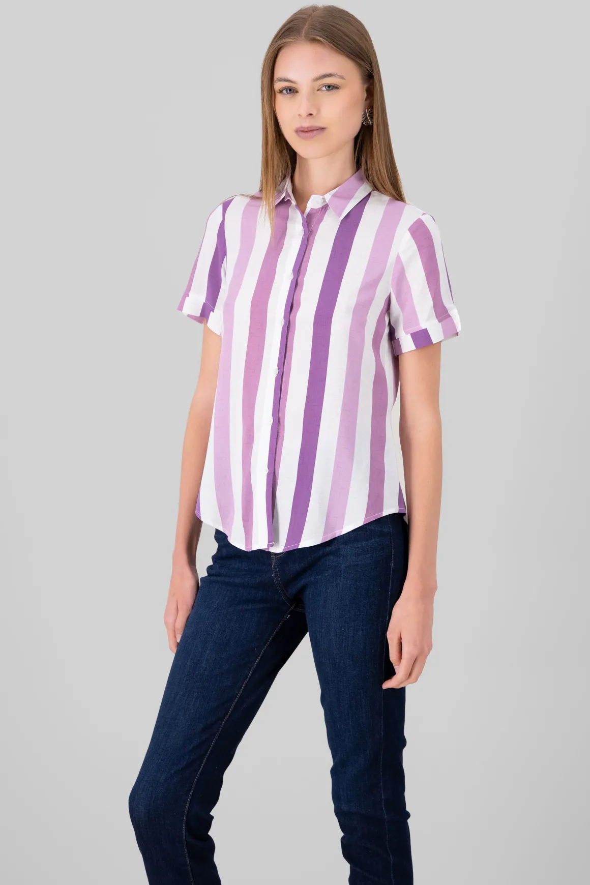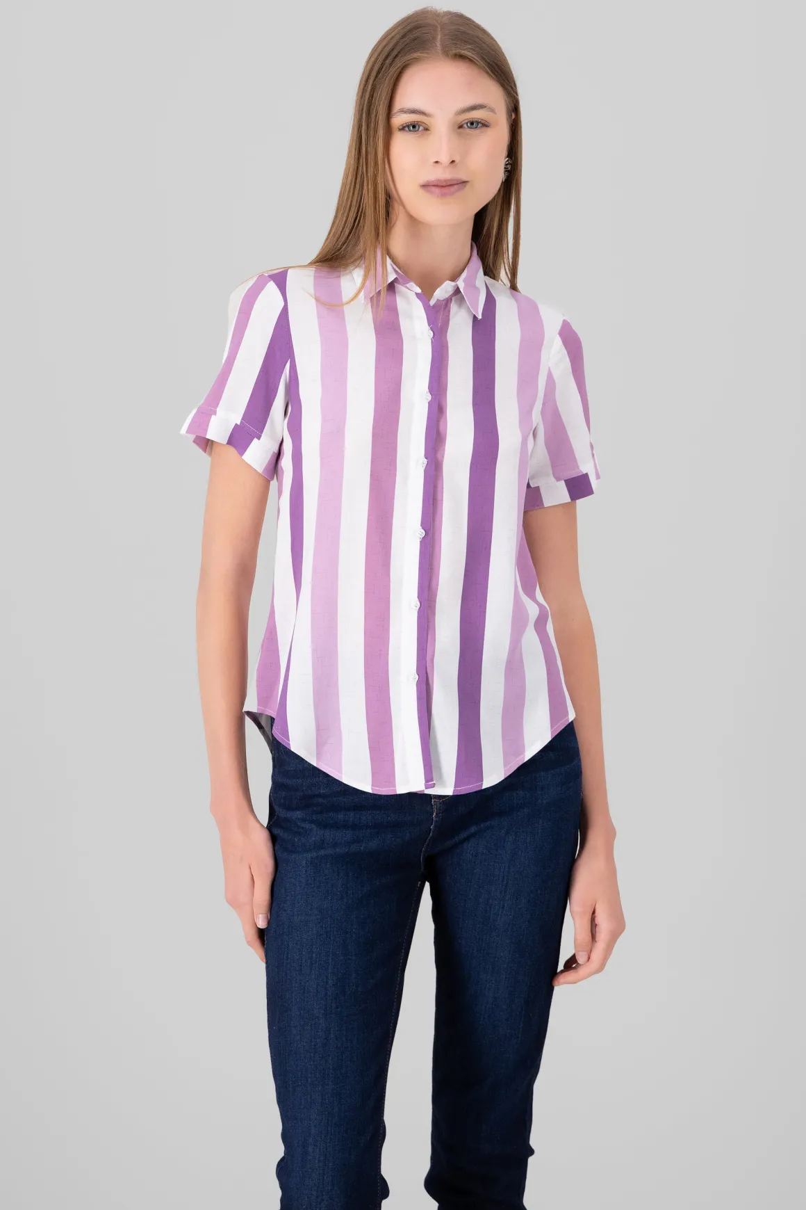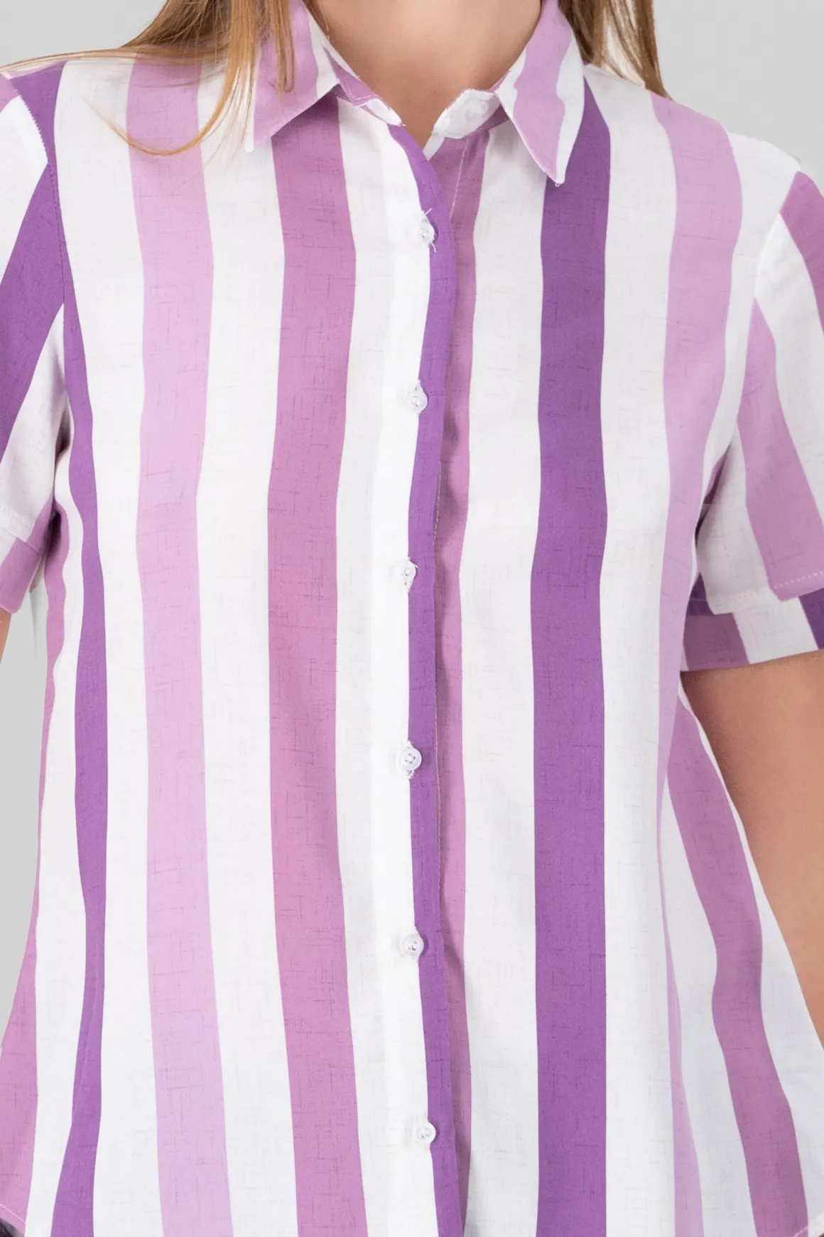 Si buscas una camisa versátil y con estilo para lucir en cualquier ocasión, nuestra camisa de manga corta rayada es la elección perfecta. Las rayas le dan un toque de elegancia y estilo, perfecto para combinar con pantalones de mezclilla para un look casual o con una falda para un estilo más chic. Ya sea para la oficina, una salida informal o una reunión con amigos, esta camisa es la opción ideal.
