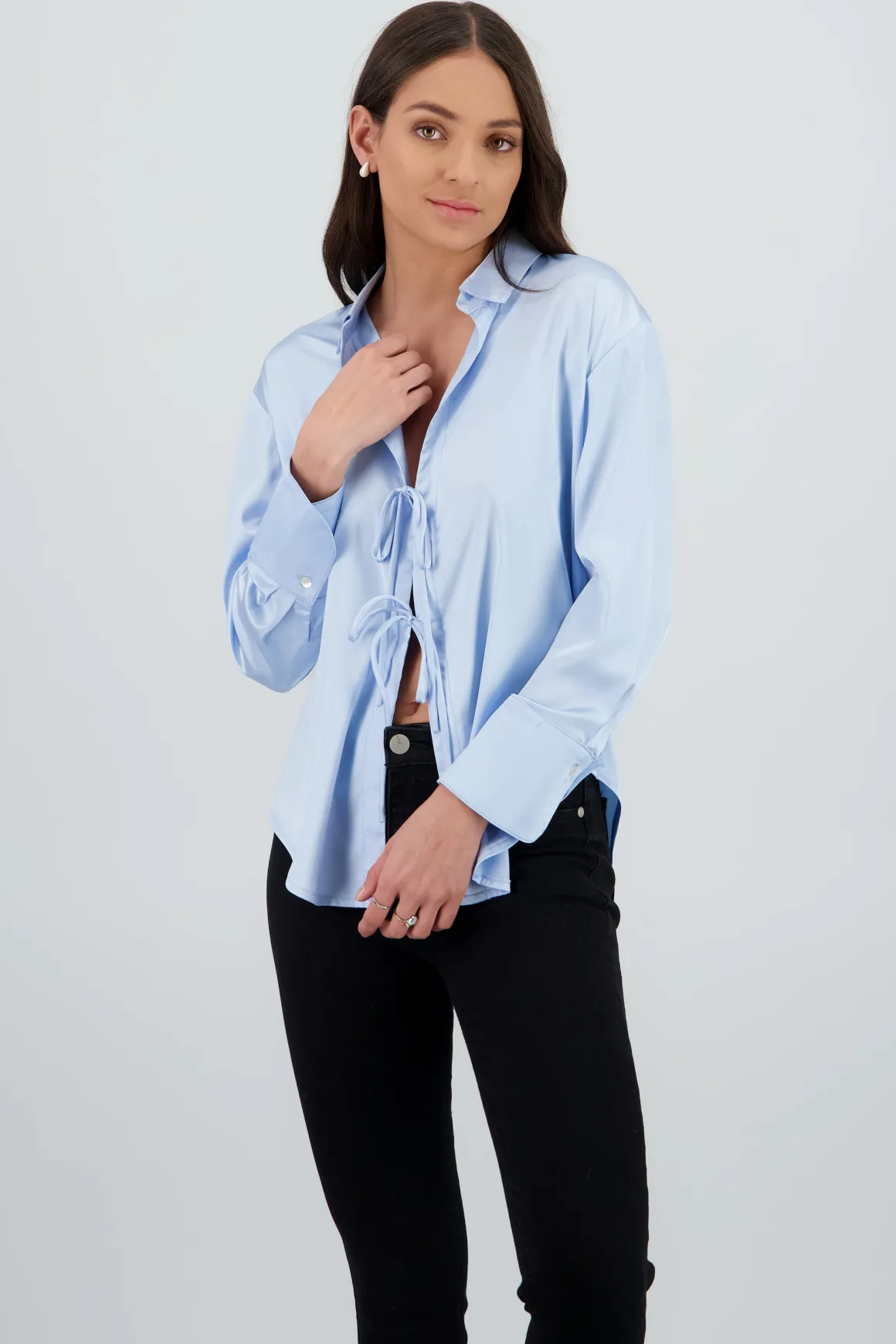 Camisa manga larga satinada detalle moños
