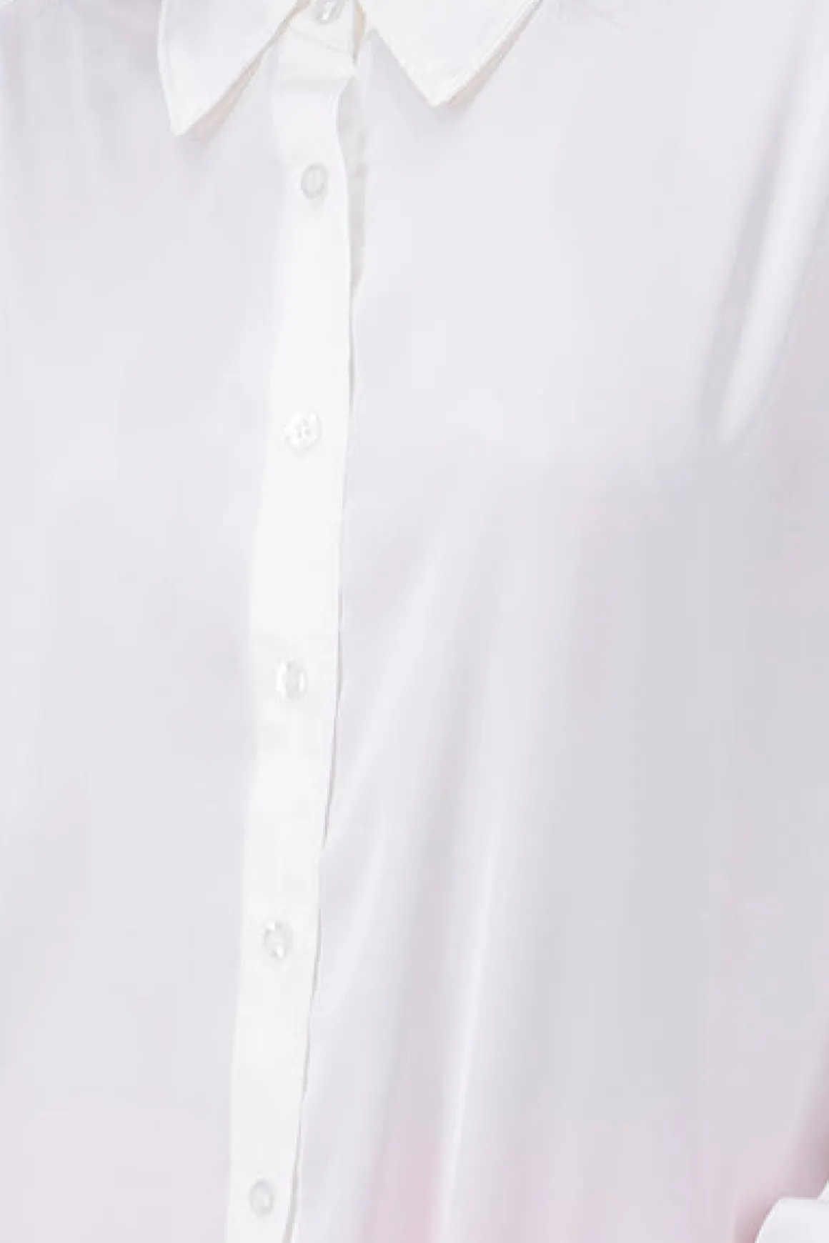 Camisa monocolor satín de manga larga con cuello regular. Cierre delantero con botones.