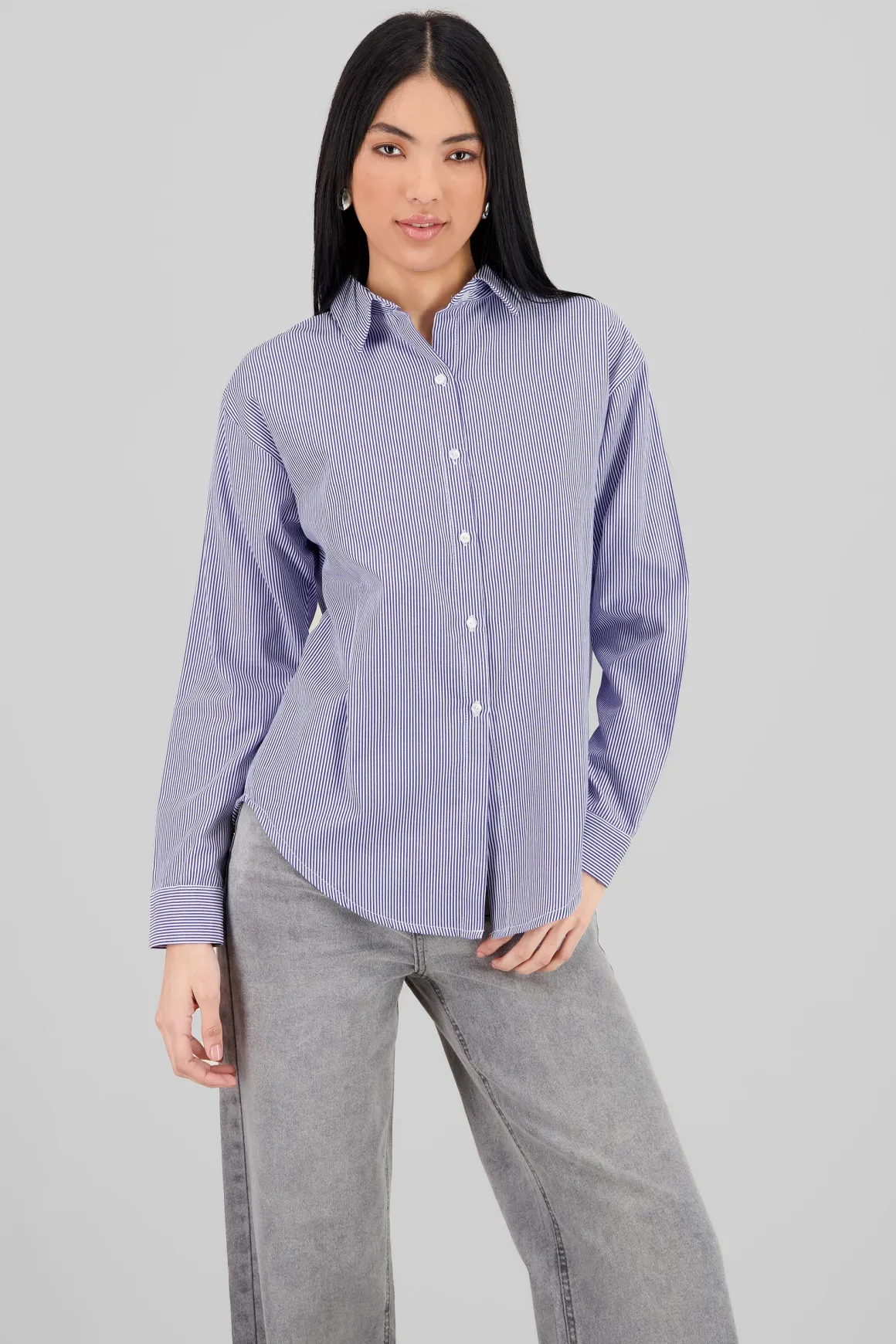 Camisa over rayas detalle abertura