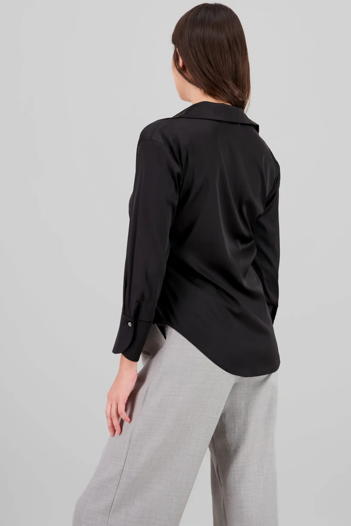 Descubre la esencia de la comodidad con esta camisa que redefine tu guardarropa. Perfecta para cualquier ocasión, su diseño oversize abraza tu silueta de manera relajada, mientras que el cuello satinado añade un toque especial que transforma lo cotidiano en algo único.