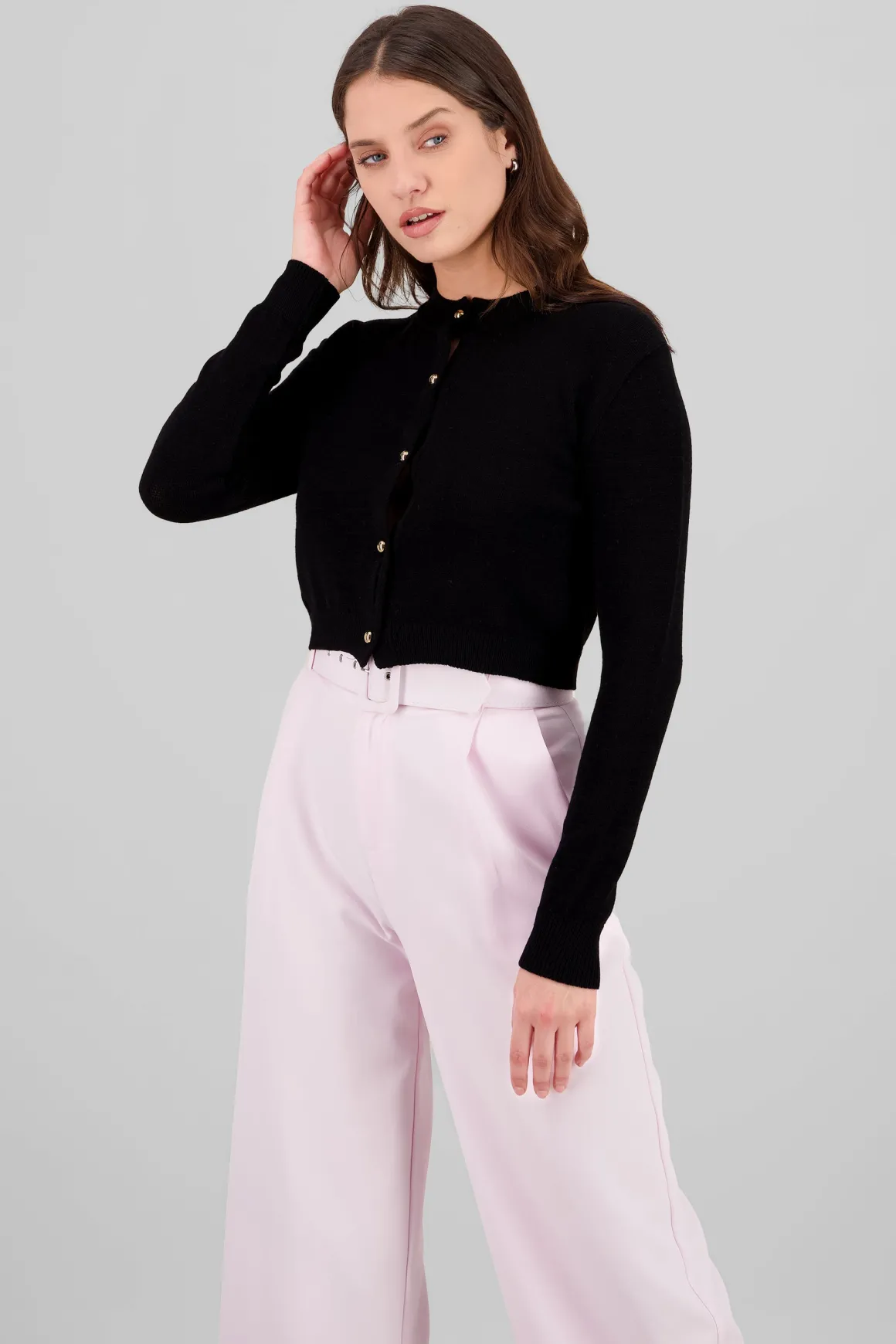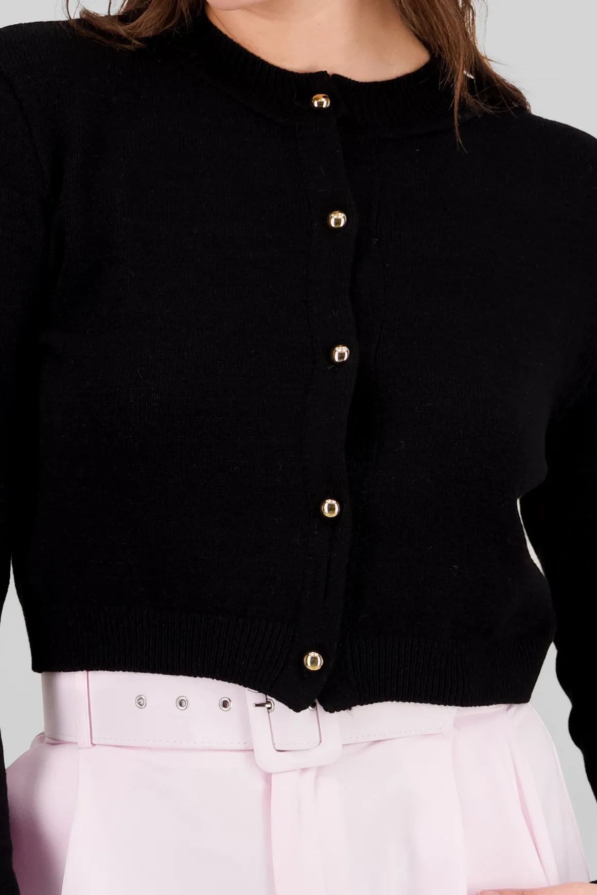 Descubre el cárdigan que transformará tu armario en un verdadero desfile de estilo y originalidad. Con un diseño encantador, este cárdigan es el aliado perfecto para crear looks únicos en cualquier ocasión. Su cuello redondo y los delicados botones dorados aportan un toque especial que no pasará desapercibido.