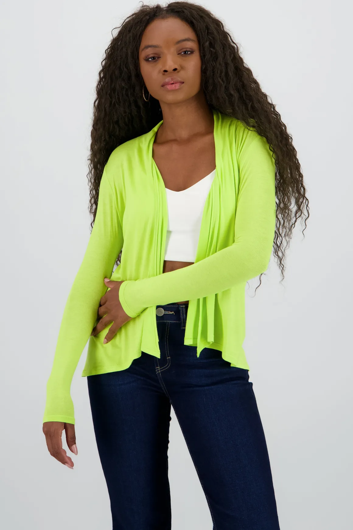 Cárdigan Corto Caída Cascada Manga Larga