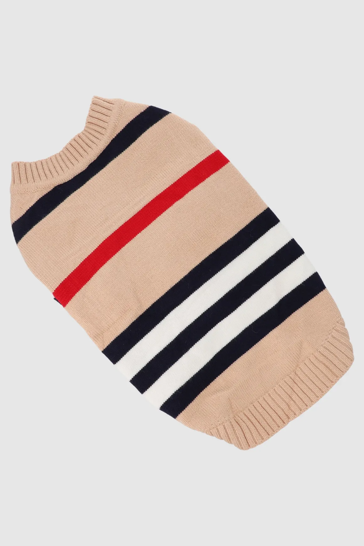 Este cardigan a rayas para mascota es perfecto para un look casual y cálido.