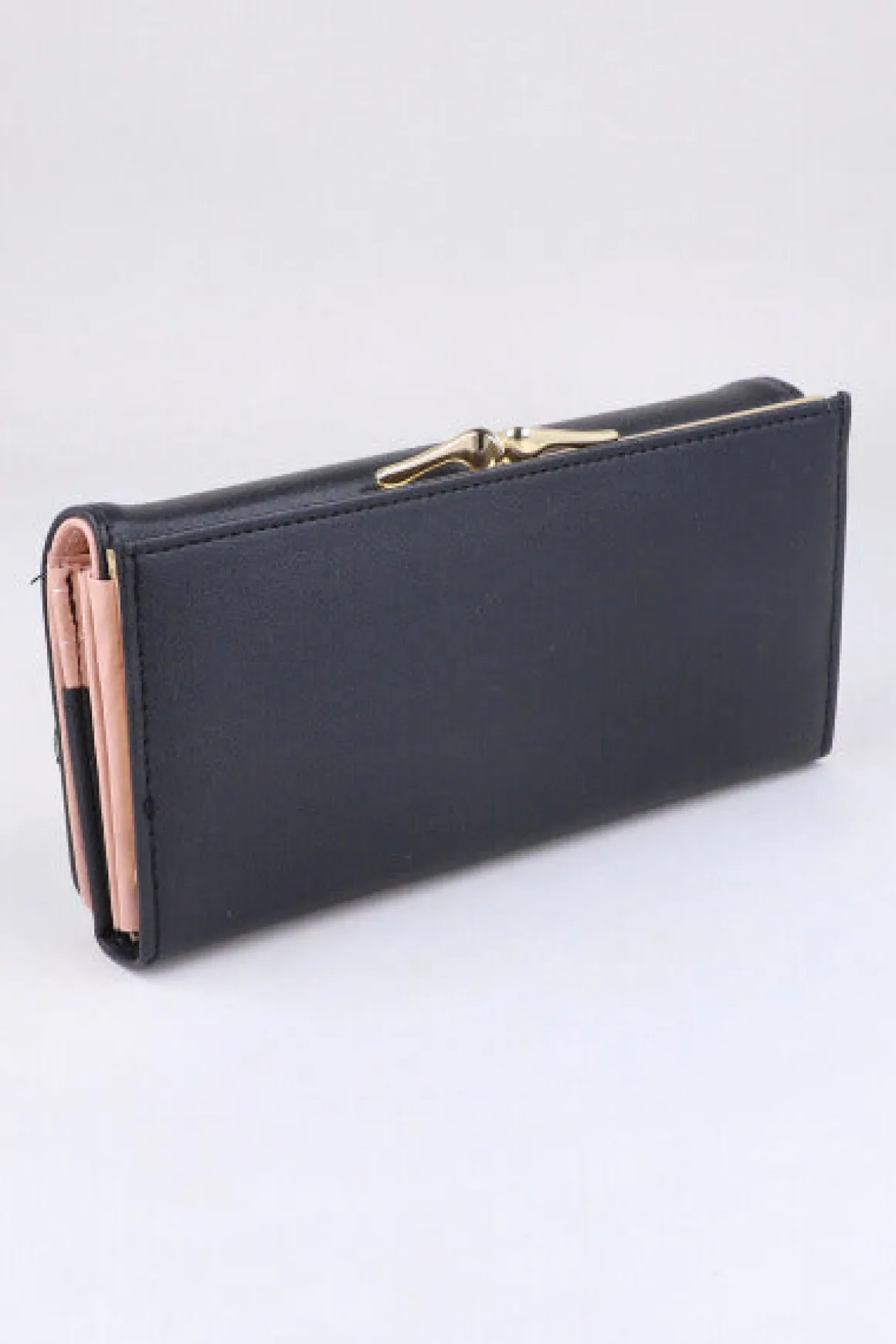 Cartera alargada de efecto piel con múltiples compartimentos en interior. Perfecta para llevar todas tus pertenencias de forma organizada y segura. El apartado trasero con broche de boquilla superior proporciona un acceso rápido a tus artículos esenciales.