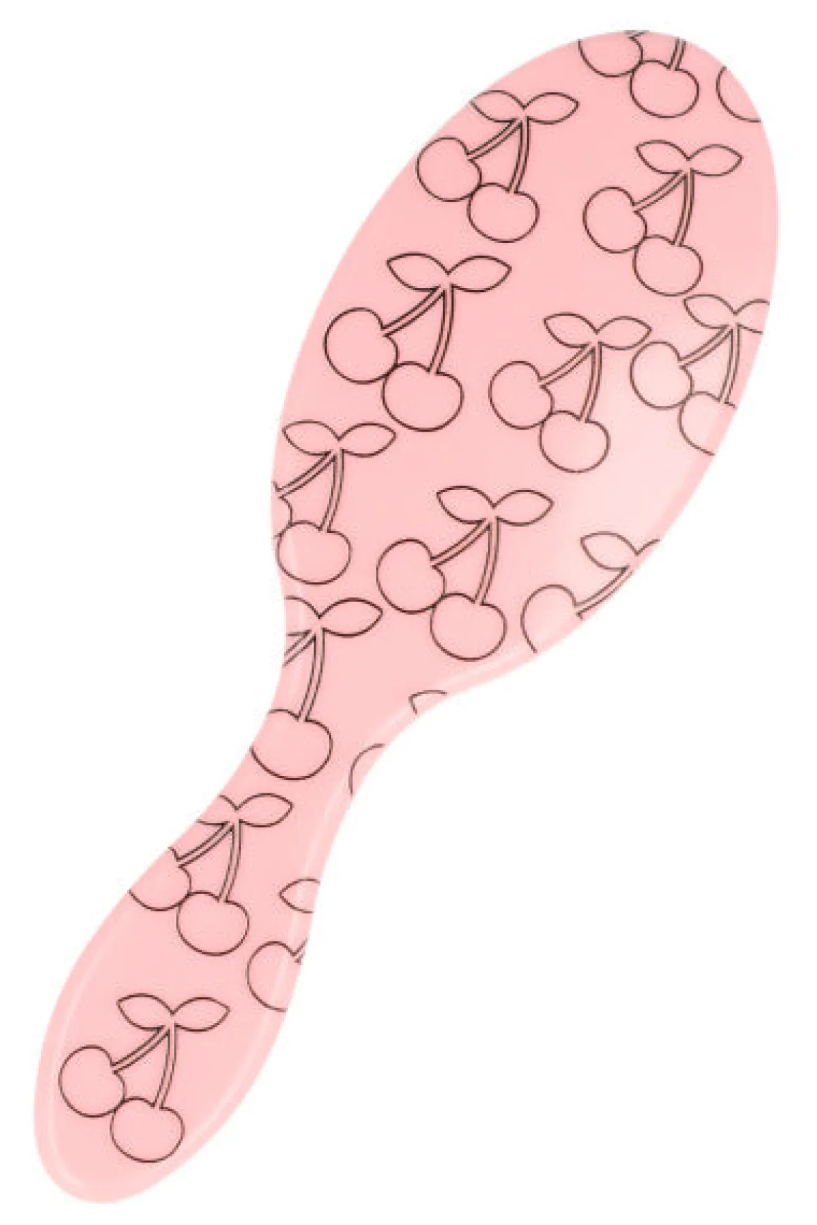 Cepillo ovalado para cabello con cerdas suaves y estampado de cerezas.