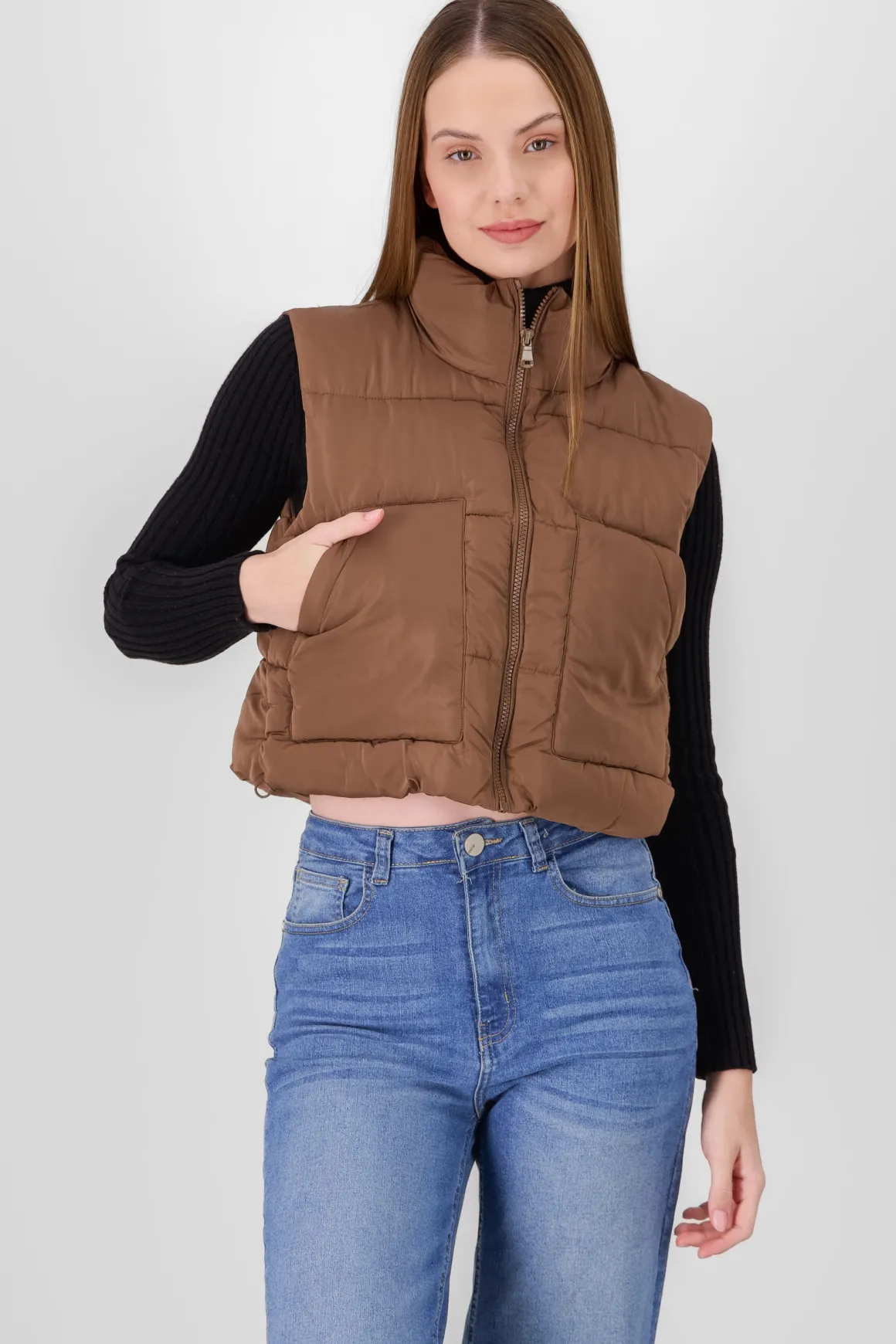 El chaleco capitonado es una prenda imprescindible en tu armario para mantenerte abrigada y con estilo. Su diseño acolchado ofrece una combinación perfecta de comodidad y versatilidad.