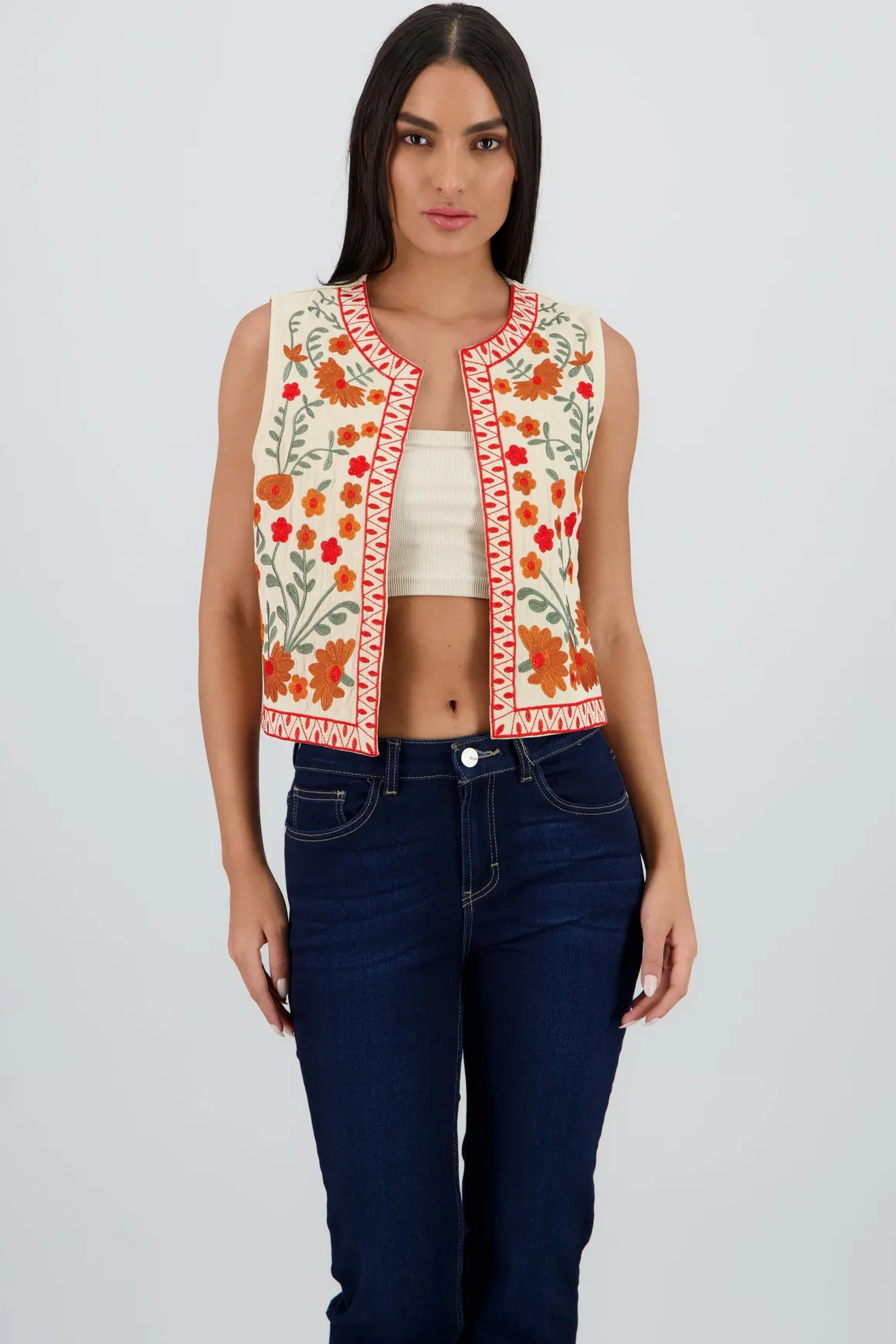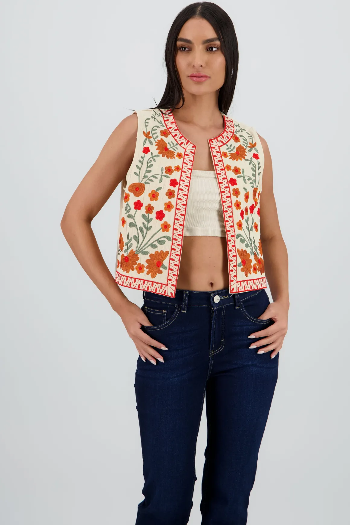 - Bordado de flores que añade un toque único.