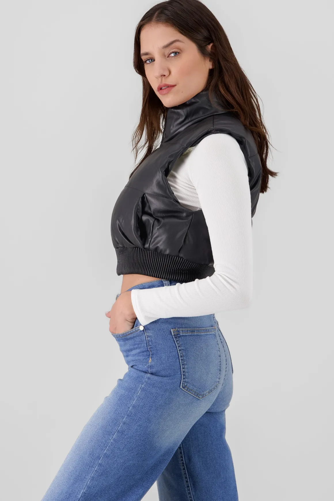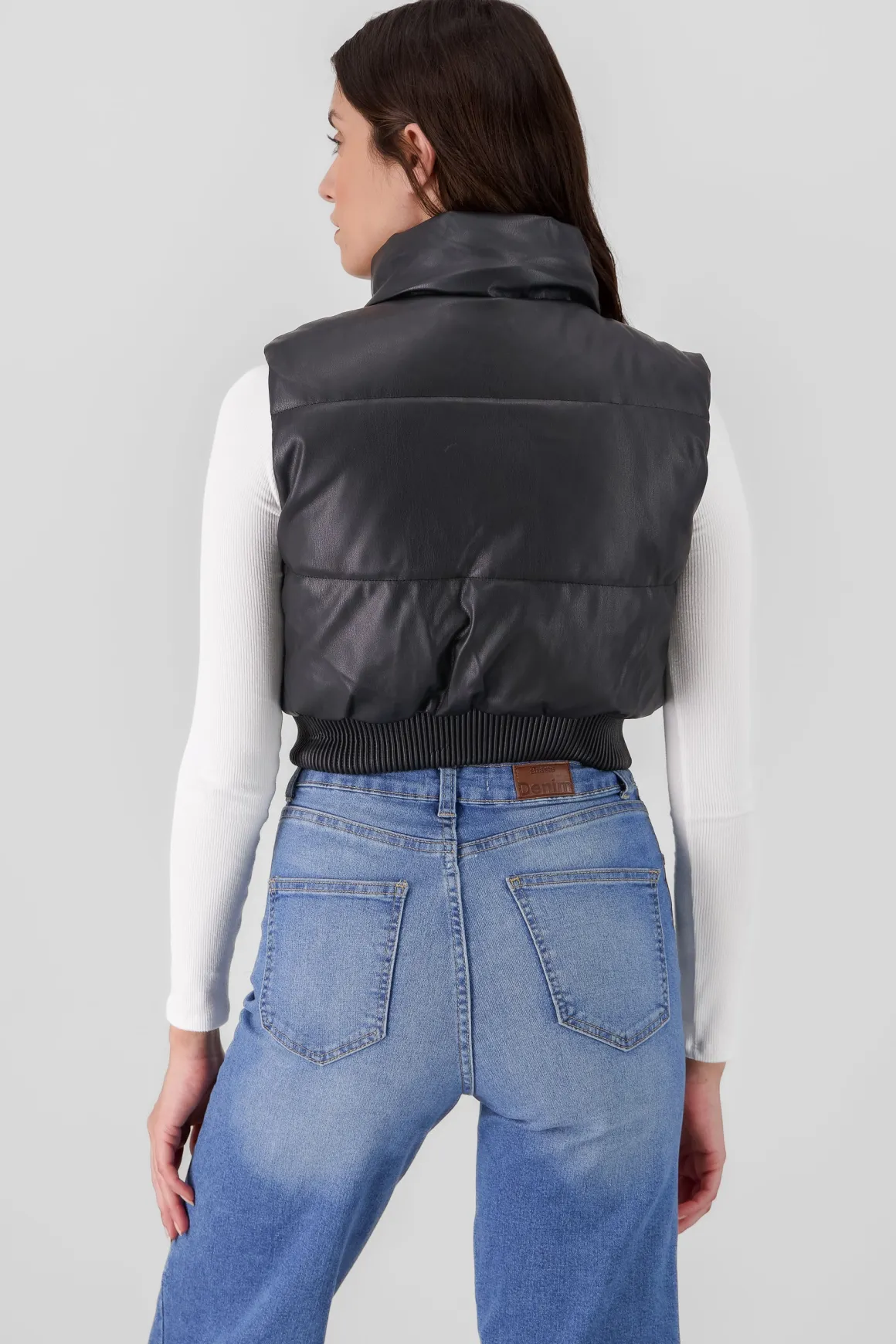 Dale un giro moderno a tu look con nuestro chaleco de efecto piel capitonado, una prenda que mezcla estilo y actitud. Su corte crop lo convierte en la opción perfecta para destacar en cualquier outfit, ya sea sobre una camiseta básica o una blusa más estructurada. El diseño capitonado añade textura y un toque cool que eleva instantáneamente tu estilo. Ideal para esas ocasiones en las que quieres algo cómodo pero lleno de personalidad. ¡Combínalo con jeans de tiro alto o una falda y prepárate para robar miradas!