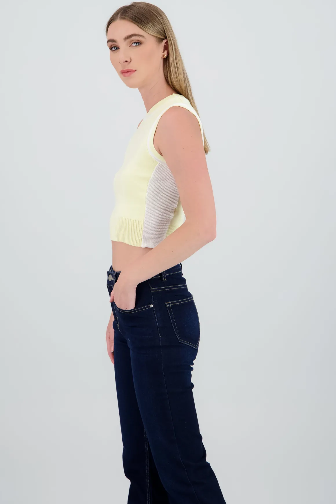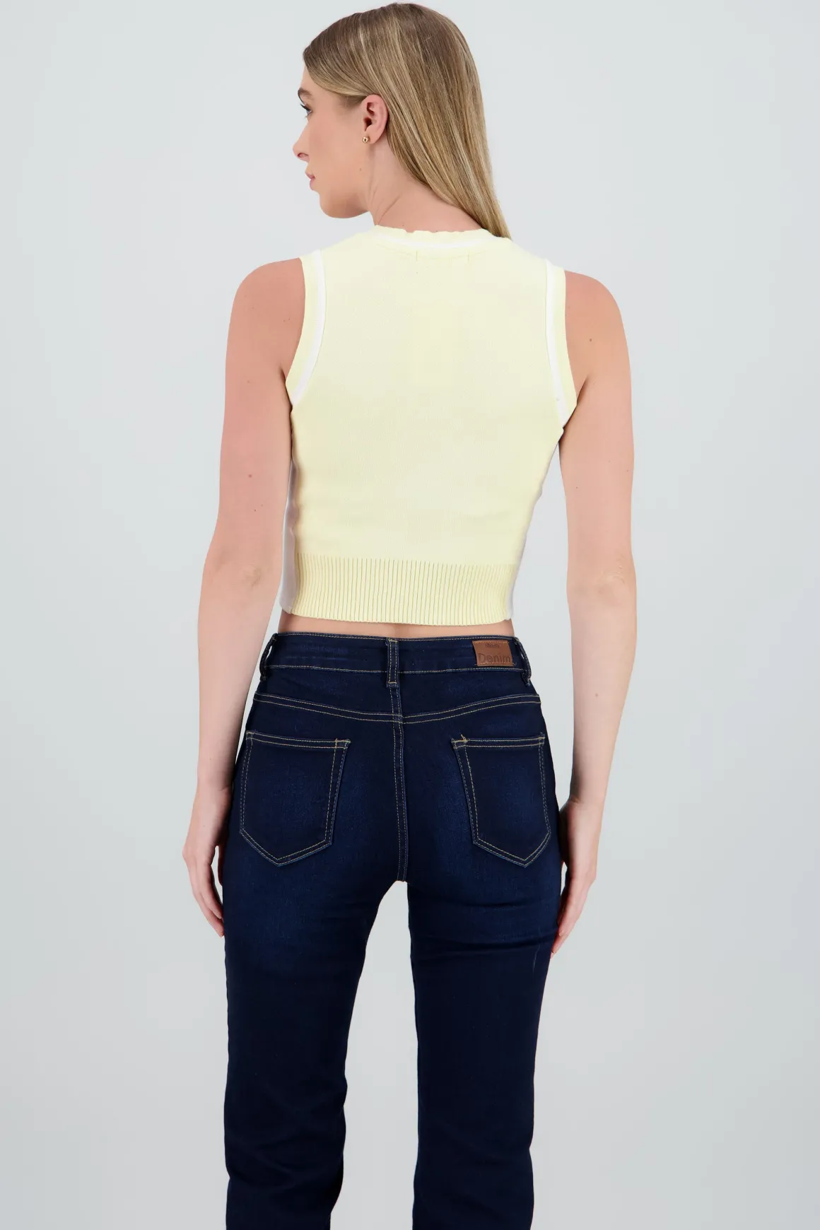 ¡Añade un toque único a tu look con este chaleco tejido! Los detalles en colores de contraste aportan estilo y originalidad.