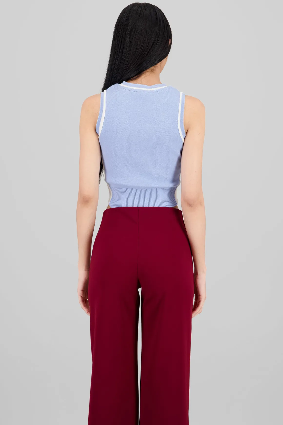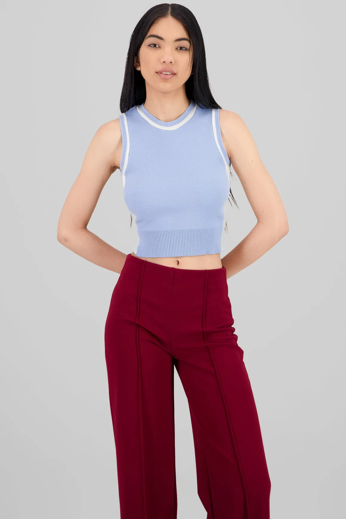 ¡Añade un toque único a tu look con este chaleco tejido! Los detalles en colores de contraste aportan estilo y originalidad.