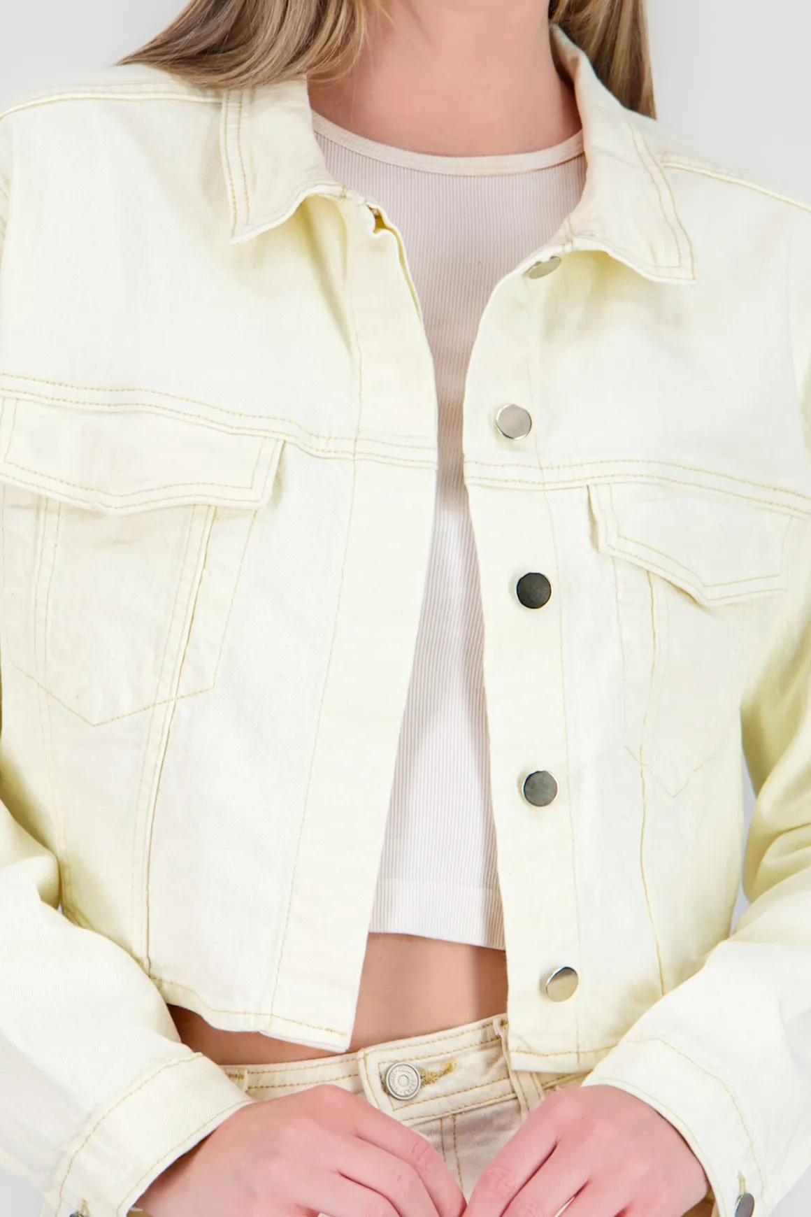 ¡Dale un giro chic a tu guardarropa con nuestra chamarra crop! Este indispensable es perfecto para esas salidas con amigas o citas especiales. Su diseño moderno y con estilo hará que cada outfit resalte.