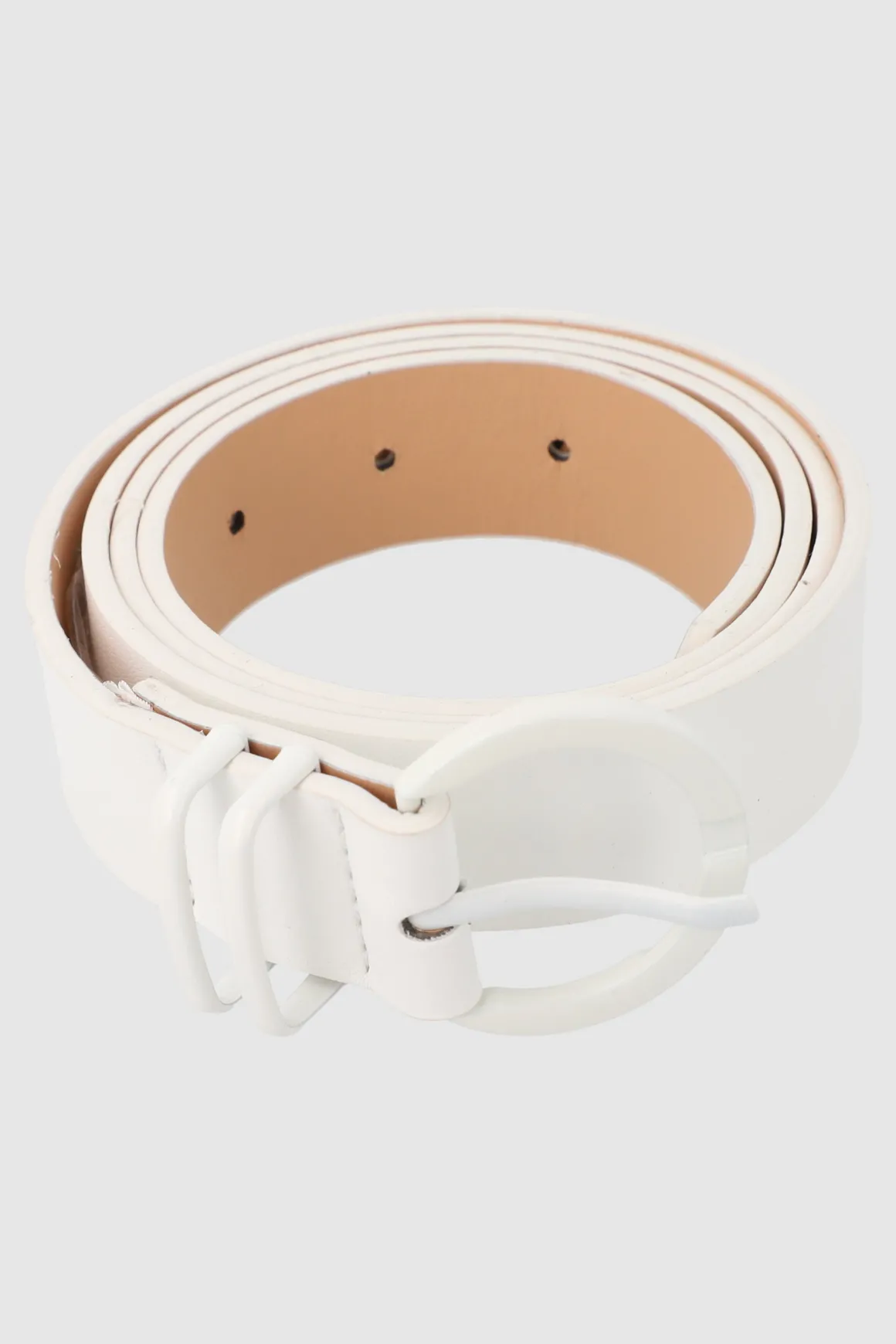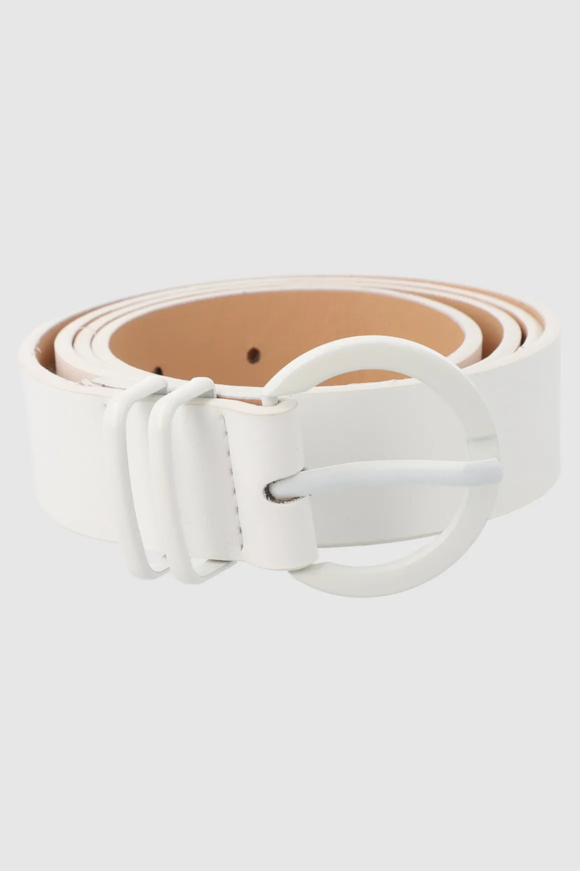 Cinturón básico con hebilla en forma de media luna. Ideal para un look moderno y versátil.