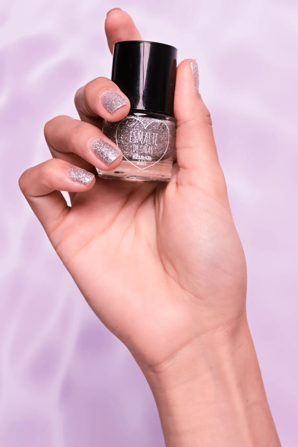Brilla como nunca con este esmalte en tono plata glitter. Ideal para un look festivo o un toque de brillo diario, su fórmula se aplica fácilmente.