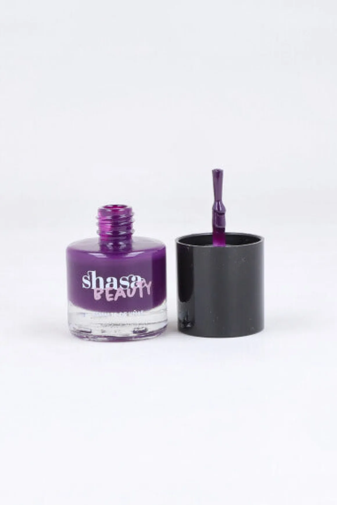 Esmalte para uñas en tono morado uva. Acabado brillante. Producto libre de crueldad animal.