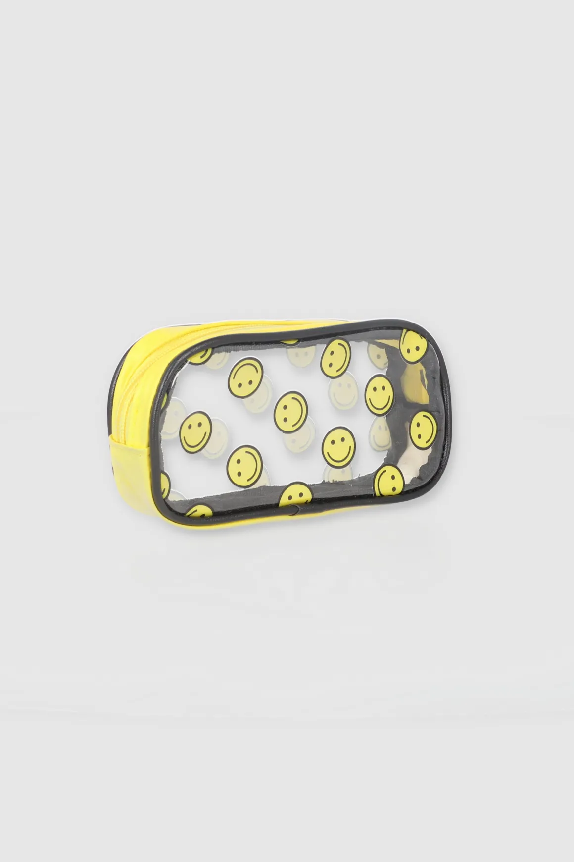 Estuche para lentes rectangular con estampado de flores y forro interno de flock.