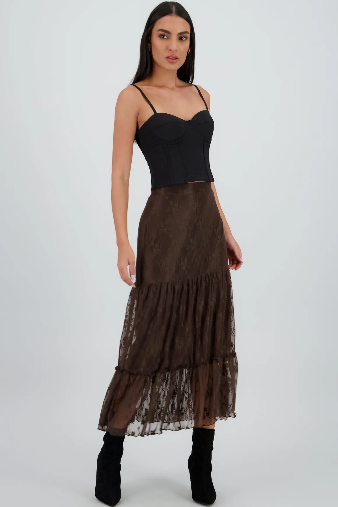 - Diseño midi con olanes que le da movimiento a cada paso.
