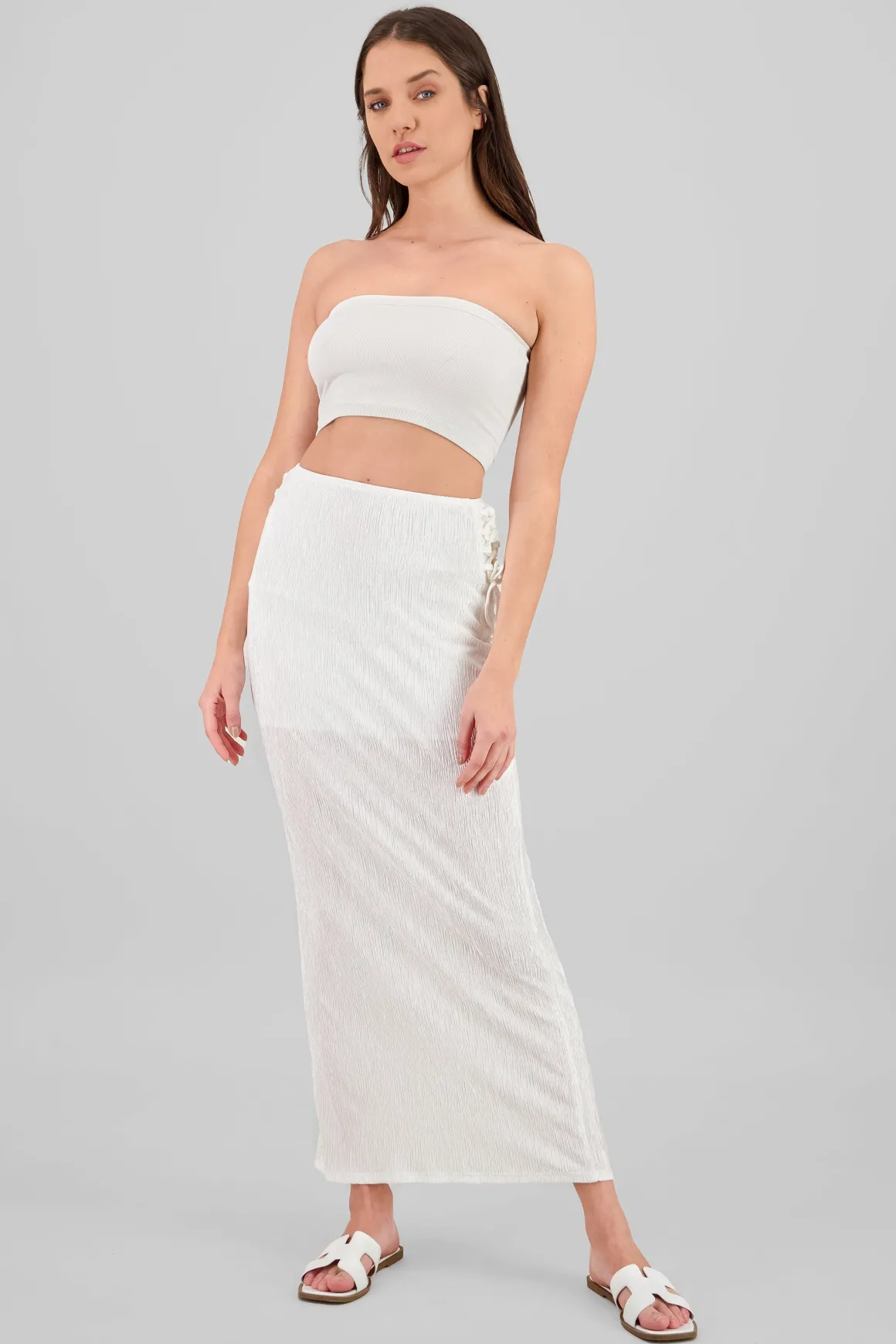 ¡Descubre la esencia de la moda con esta encantadora falda midi! Perfecta para cualquier ocasión, su diseño único y lleno de personalidad hará que te enamores a primera vista.