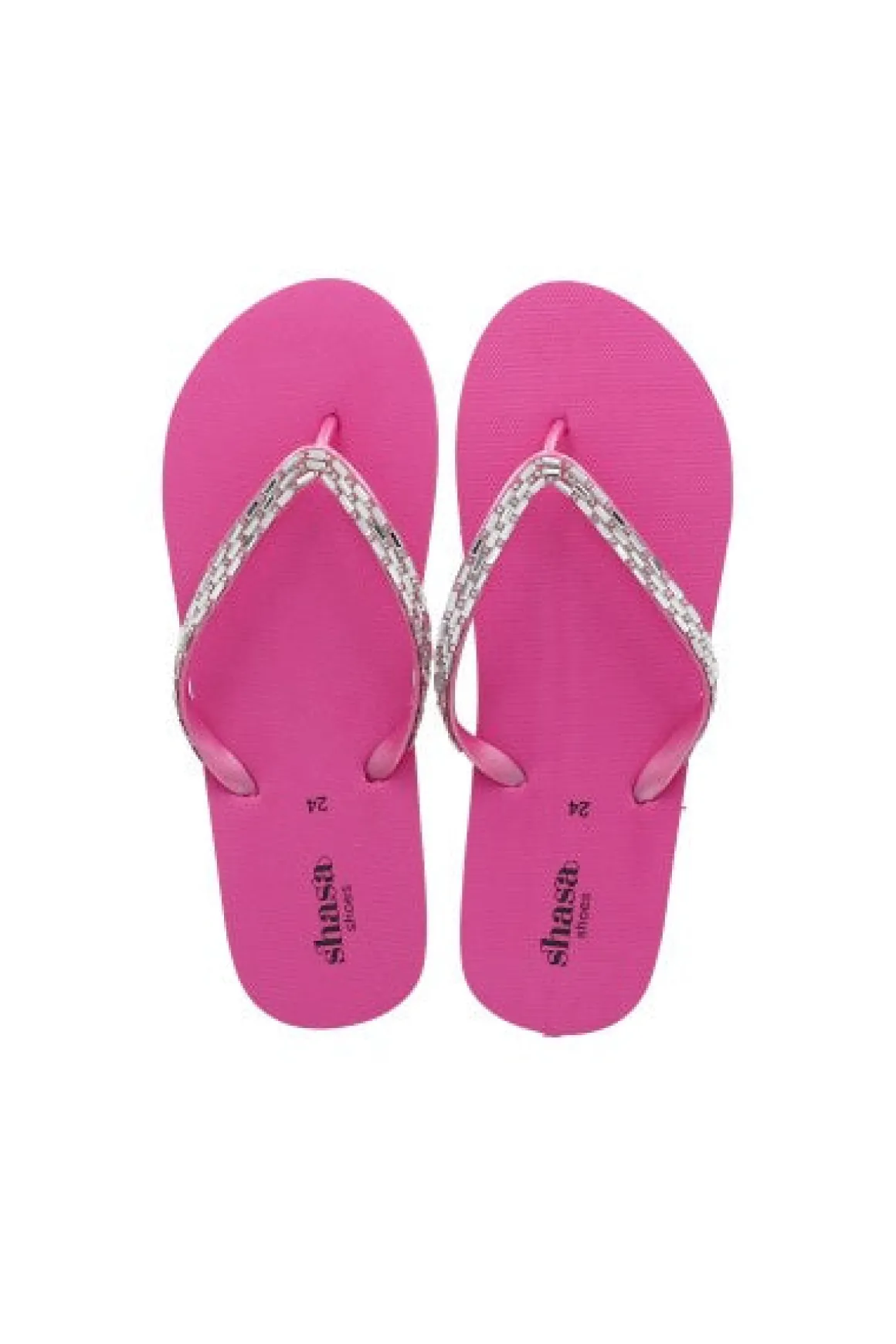 Luce un estilo brillante y relajado con nuestras sandalias flip flops. Las cintas decoradas con aplicación de brillos añaden el toque perfecto de glamour a estas sandalias básicas. Ideales para tus días de playa, salidas casuales o cualquier aventura, combinan comodidad y moda. Fácil de combinar con cualquier outfit de verano, desde bikinis hasta vestidos ligeros. ¡Haz que cada paso brille con estas sandalias que elevan tu estilo a otro nivel!