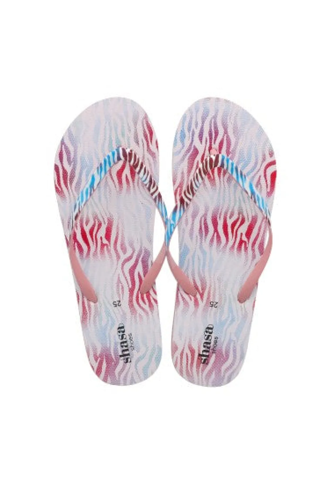 Flip flops pata de gallo con estampado de llamas bicolor.