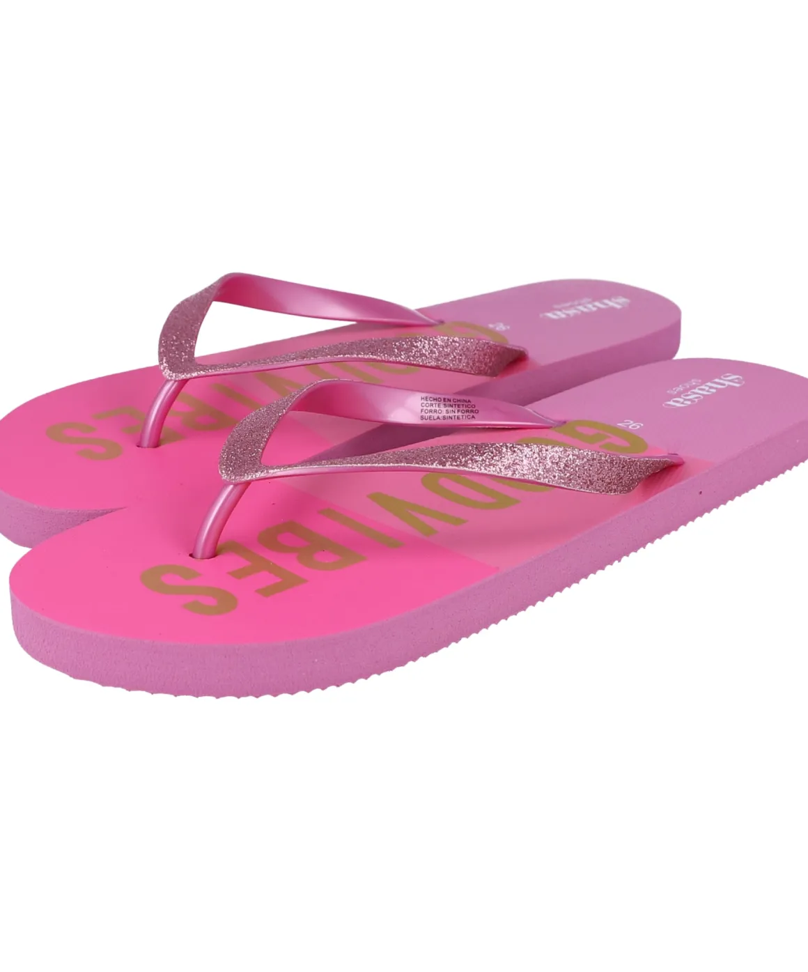 Combínalas con shorts, vestidos o tu traje de baño favorito. ¡Añade un toque de brillo y buenas vibras a tu look con estas flip flops únicas!