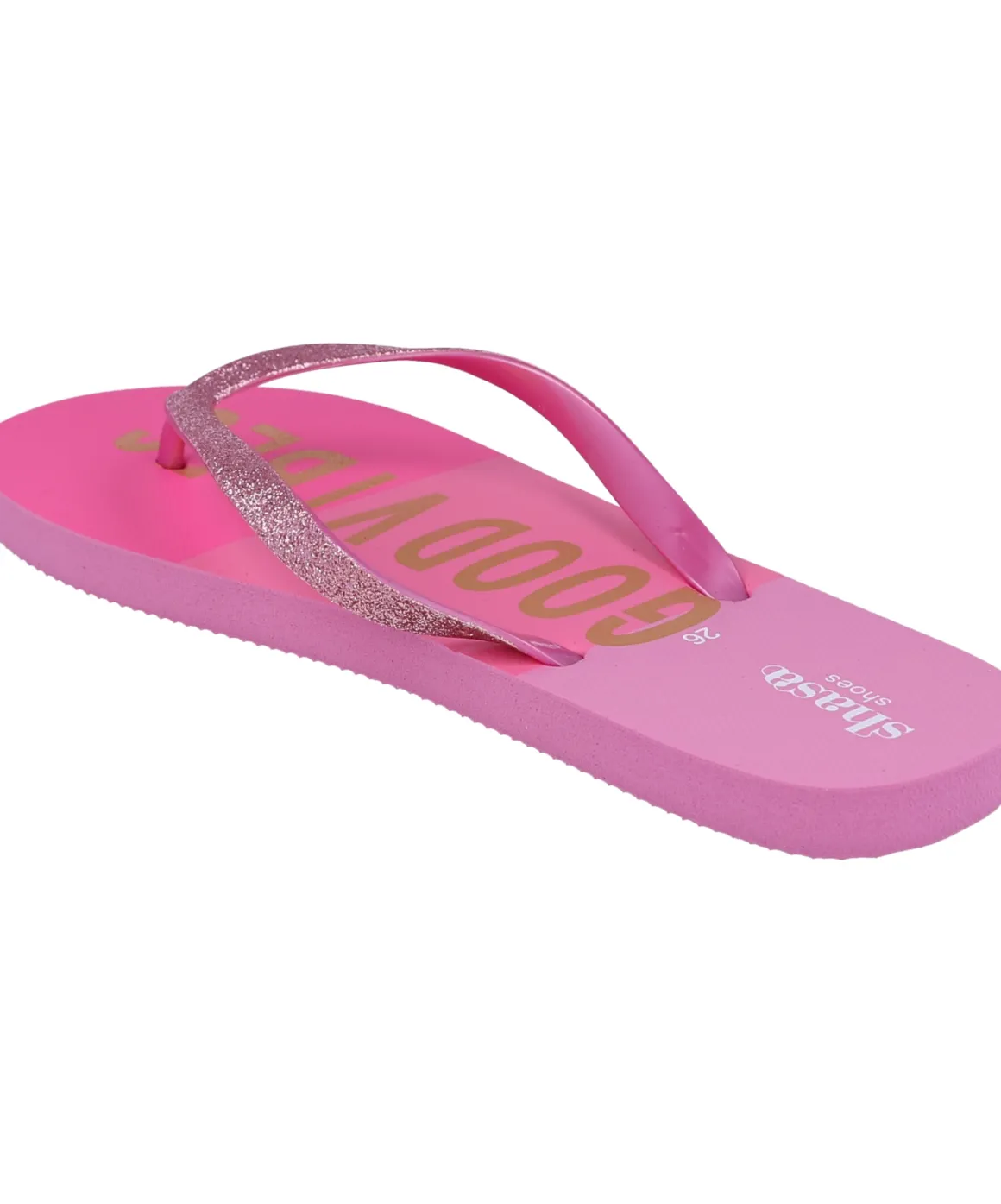 ¡Luce increíble con nuestras sandalias flip flop! Estas sandalias cuentan con una suela estampada con el texto «good vibes» y cintas delgadas con glitter que añaden un toque brillante a tu estilo. Ideales para la playa o la piscina, son perfectas para complementar tus outfits frescos y modernos.
