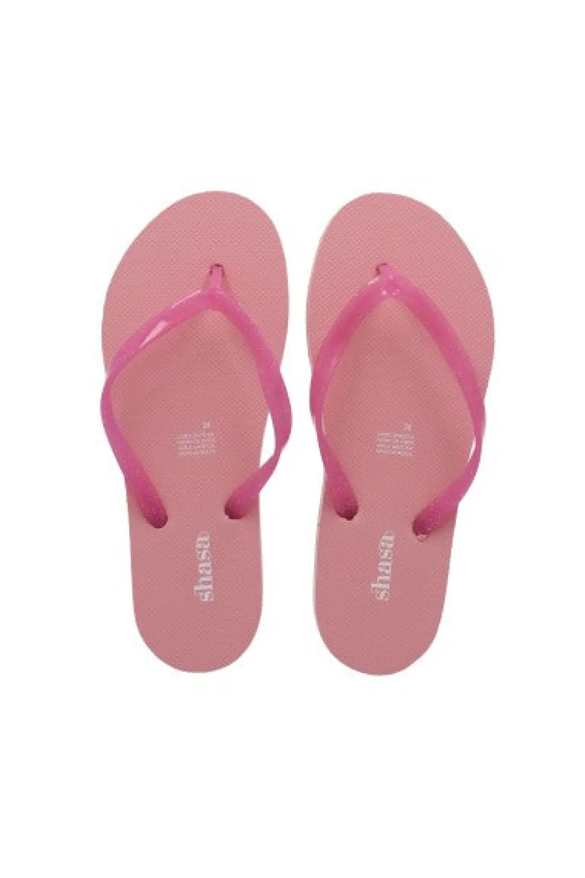 Flip flop suela de eva antiderrapante pata de gallo. Tiras en color sólido con brillos.