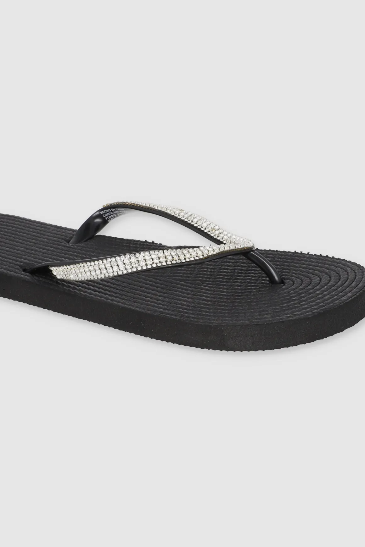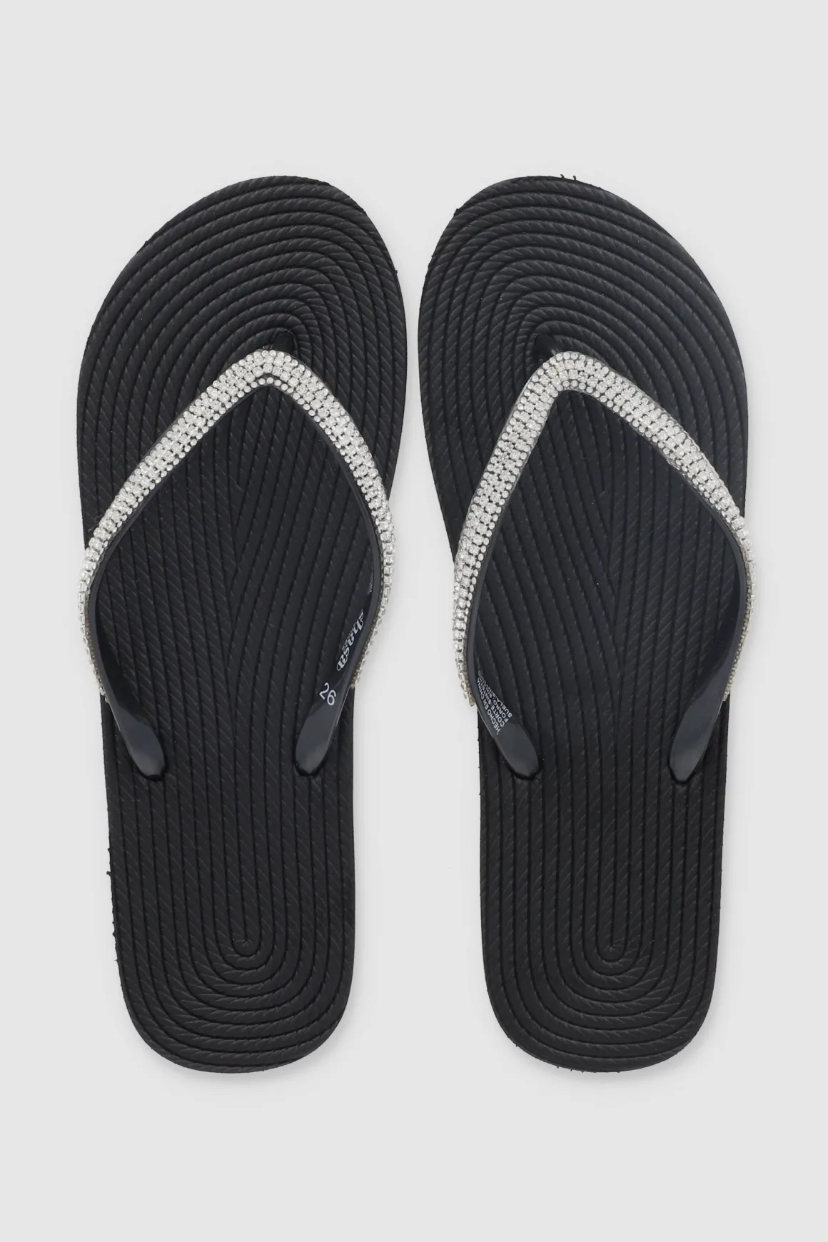 ¡Dale brillo a tu estilo vacacionero con nuestras sandalias flip flop! Estas sandalias cuentan con una suela texturizada para mayor comodidad y cintas decoradas con una aplicación de brillos que capturan la luz en cada paso. Perfectas para la playa, la piscina o cualquier salida casual, son el accesorio ideal para complementar cualquier look.