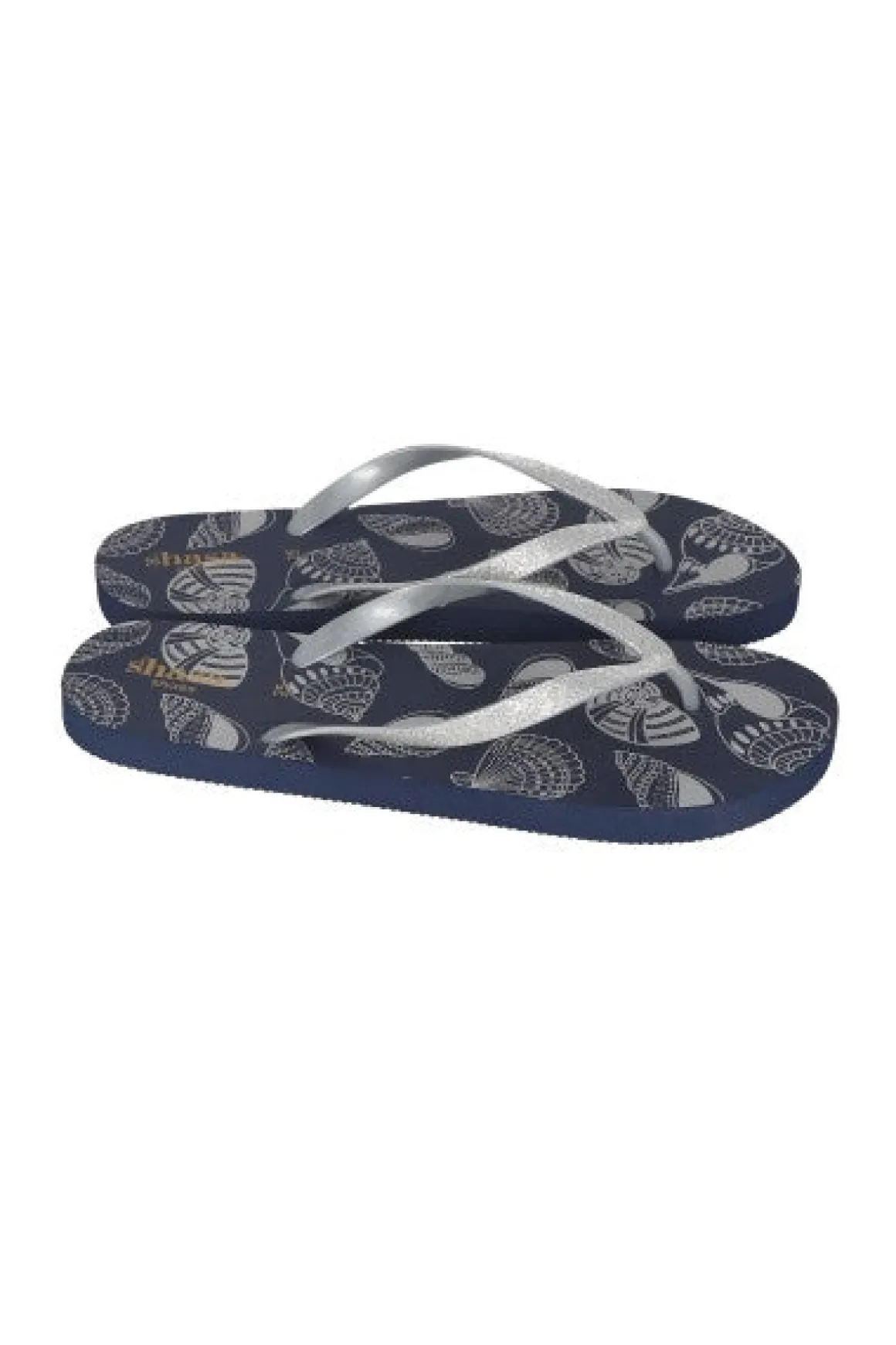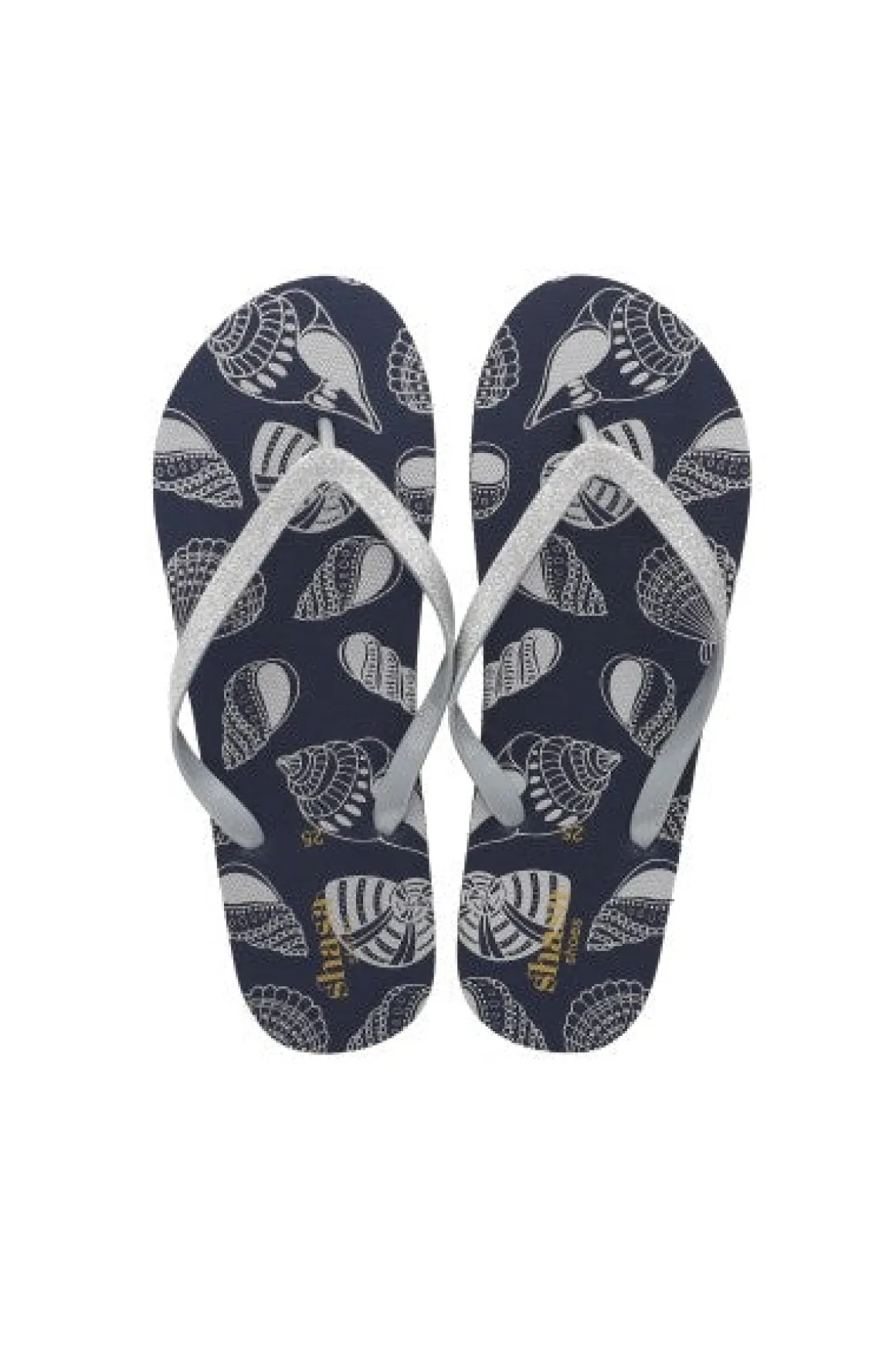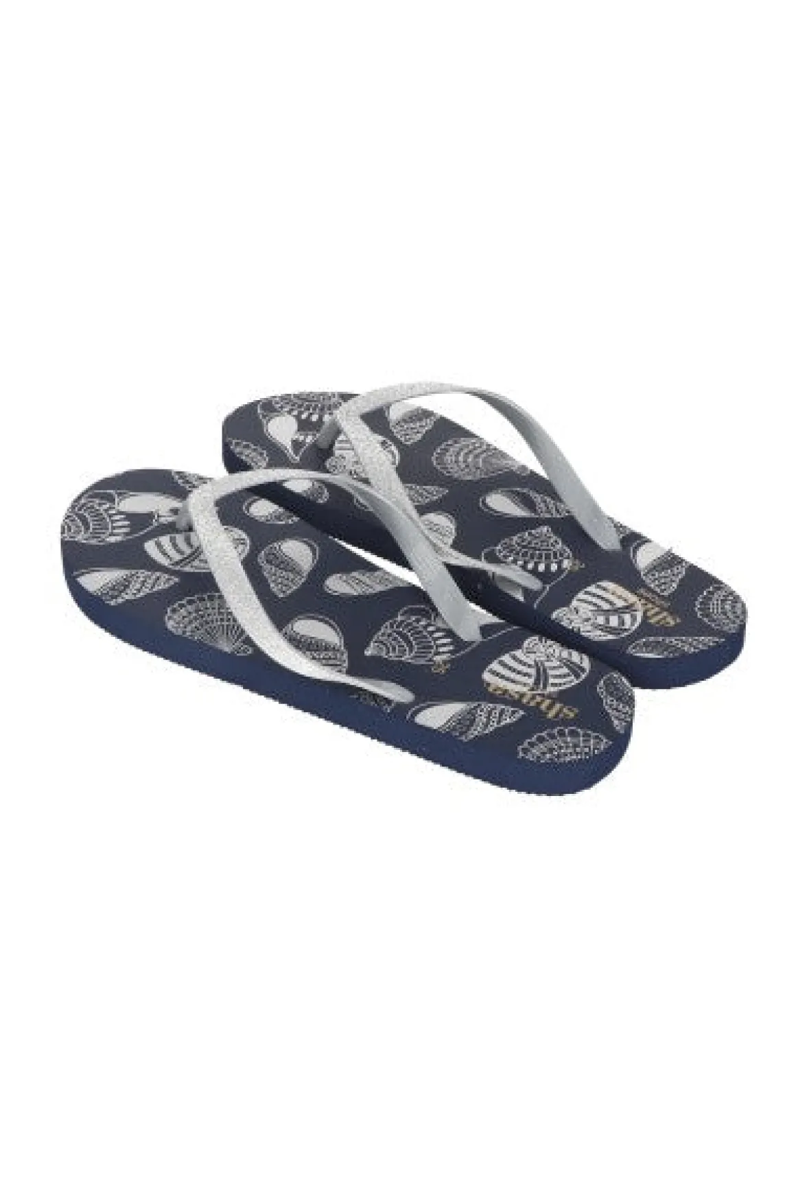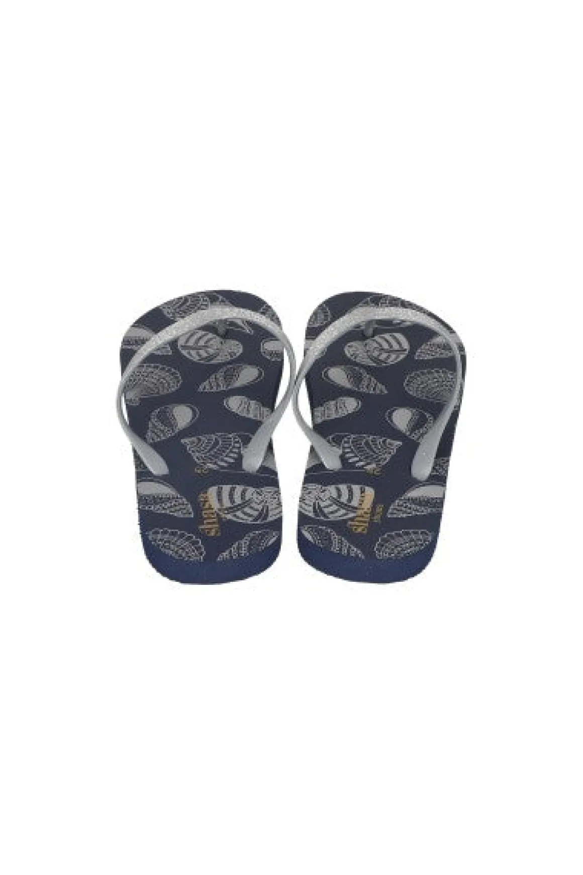 Flip flops pata de gallo con estampado de conchas con glitter.
