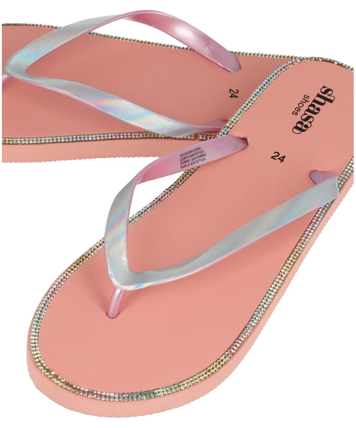 ¡Dale un toque mágico a tu look con nuestras sandalias flip flop! Cuentan con cintas iridiscentes que cambian de color con la luz, perfectas para añadir un toque divertido y moderno a tu outfit.
